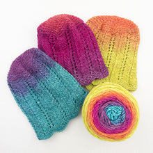 The amazing ombré colors of Atelier exclusive, Freia Superwash Merino Silk Sport are extra fun in our Chevron Baby Hat! Knitted in a gentle chevron lace pattern to create a scalloped edge that's extra adorable. And machine washable for easy care.