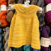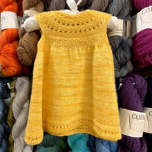 This adorable little vintage-inspired piece can grow right along with your child, from being a dress for your baby to being a tunic for your toddler. Knitted in Mrs. Crosby Satchel, it's 100% machine washable for easy care.