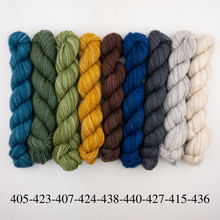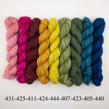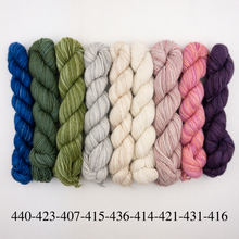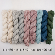 ~9 mini-skeins Manos del Uruguay Fino, 70% merino, 30% silk, 98 yards each