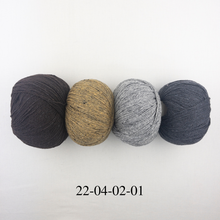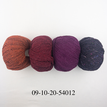 Debbie Bliss Fine Donegal Tweed Fingering, 95% Donegal wool, 5% cashmere, 550 yards each.
