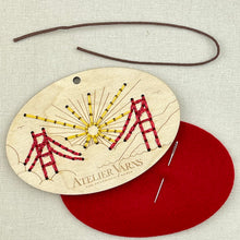 Each kit includes the wooden ornament, a pre-cut felted back, 2 colors of embroidery floss, a sewing needle, and a hanging cord. Decorate them yourself, or give them as gifts to your favorite knitting friends - either way, these Atelier Logo Ornament Kits are sure to be a hit this holiday season!