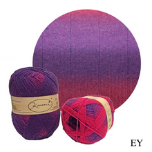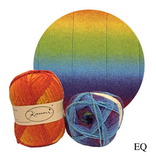Just one skein of this amazing, slow-striping Danish yarn will make our garter stitch scarf pattern. The rainbow colorway shown is color EQ, but this scarf is stunning in every one of Kauni's colorways!