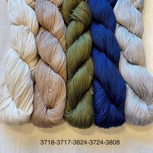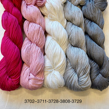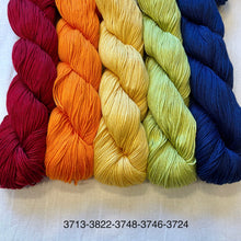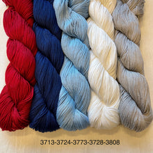 ~5 skeins Cascade Ultra Pima Cotton DK, 100% cotton, 220 yards each.