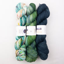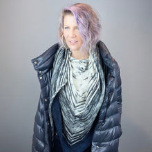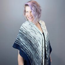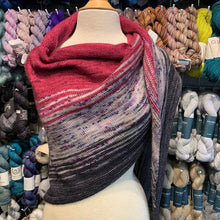 You're invited to play with one of our absolute favorite yarns - the sumptuously hand dyed Smooshy with Cashmere from Dream in Color! Each kit contains three different skeins that blend together in a fabulous fade as you knit. The pattern is simple but never boring as the speckles and washes of color dance through your fingers. The off-center shaping makes it more wearable than a typical triangle shawl.