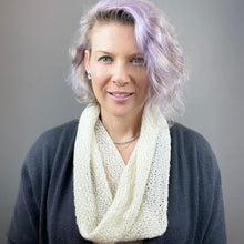 Sylph, from Jade Sapphire, is one of our favorite summertime yarns. Divine to wear, it blends linen and cashmere for lightweight, cozy elegance. And Jade Sapphire custom dyes certain colors exclusively for Atelier! This cowl uses just one skein for a loosely-knit, featherweight summer accessory.