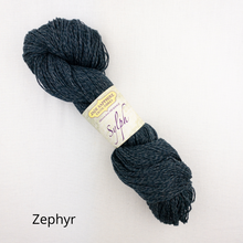 ~1 skein Jade Sapphire Sylph, 58% cashmere, 42% linen, 309 yards.