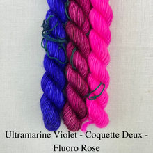 - Fluoro Rose, Neon Peach & Push Pop with a hot pink raccoon fur pompom