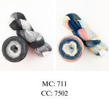 ~1 (1, 2, 2) (3, 3) skeins MC Artyarns Cashmere Ombré, 100% cashmere, 738 yards each.