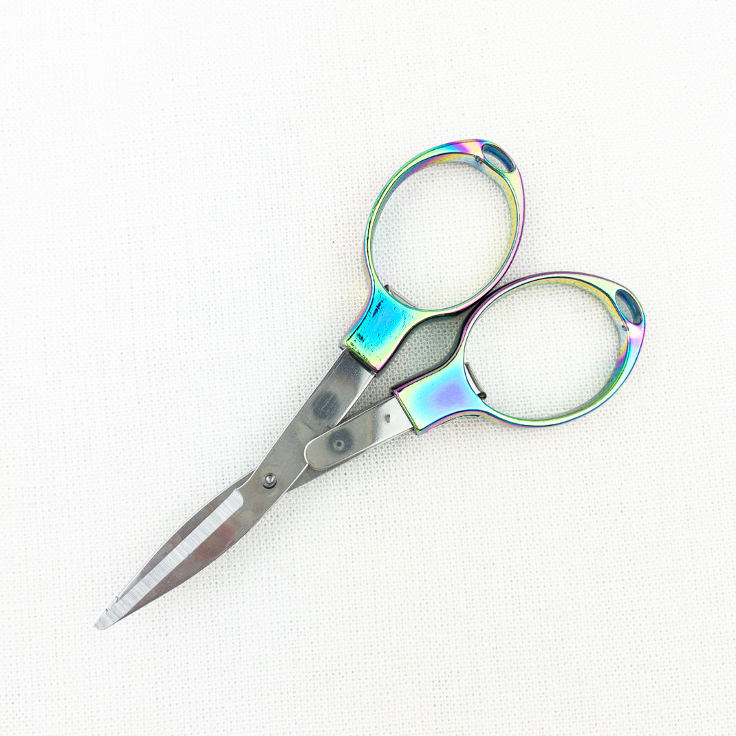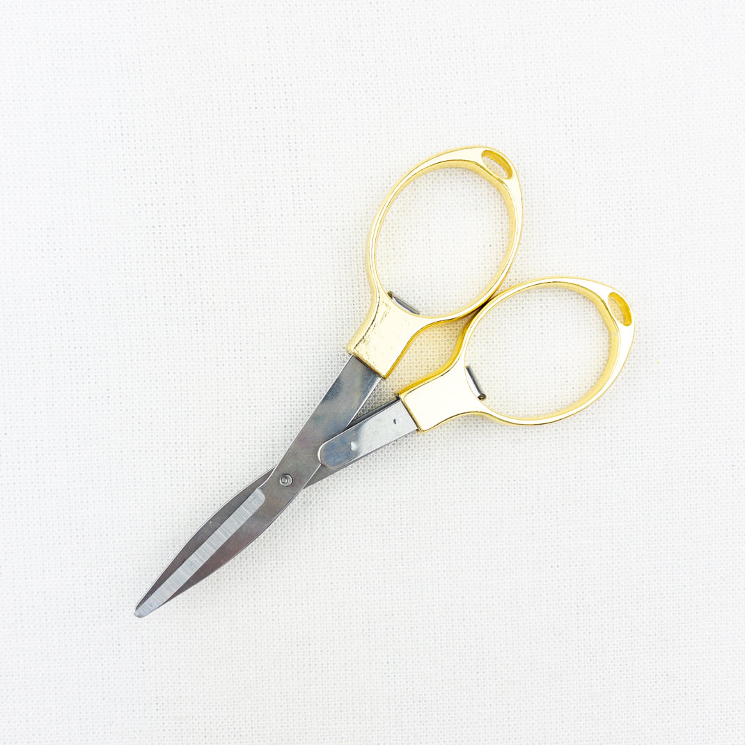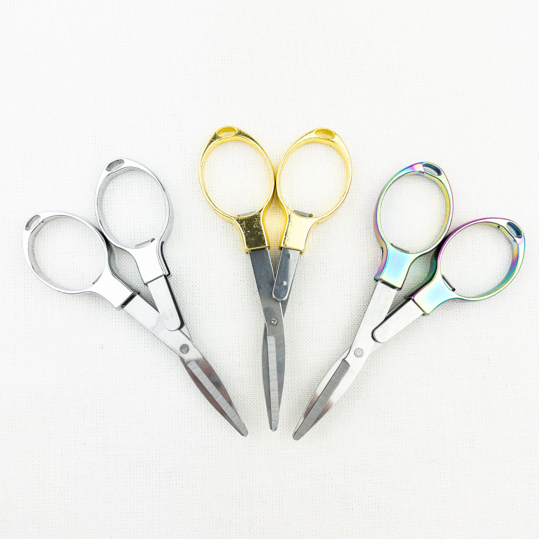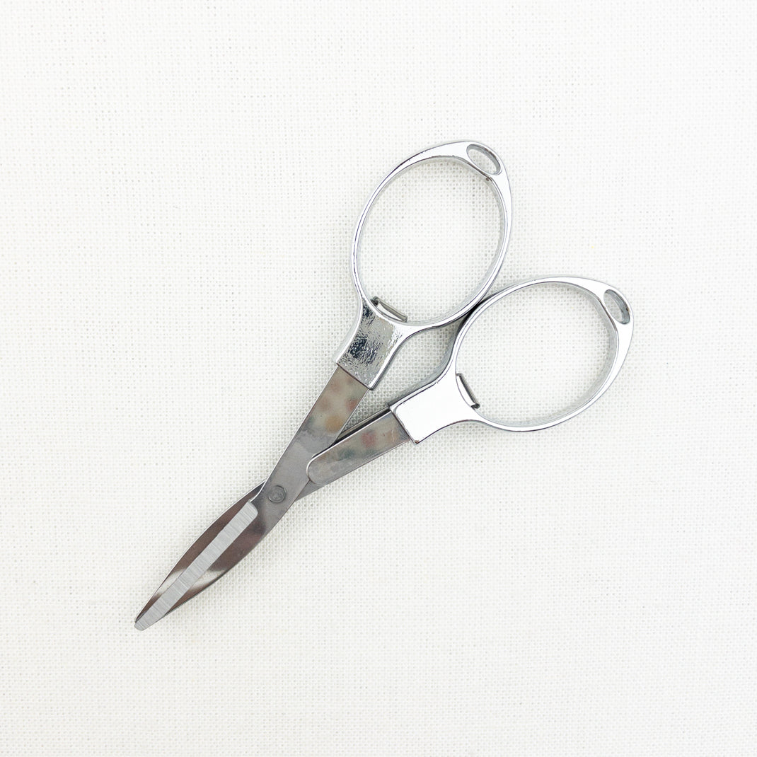 Practical and great for travel! Atelier Folding Scissors fold for extra safe storage. Just fold them up and throw them in your notions bag! Pro-tip, keep an extra set in your car for loose strings, removing tags and opening snack bags.