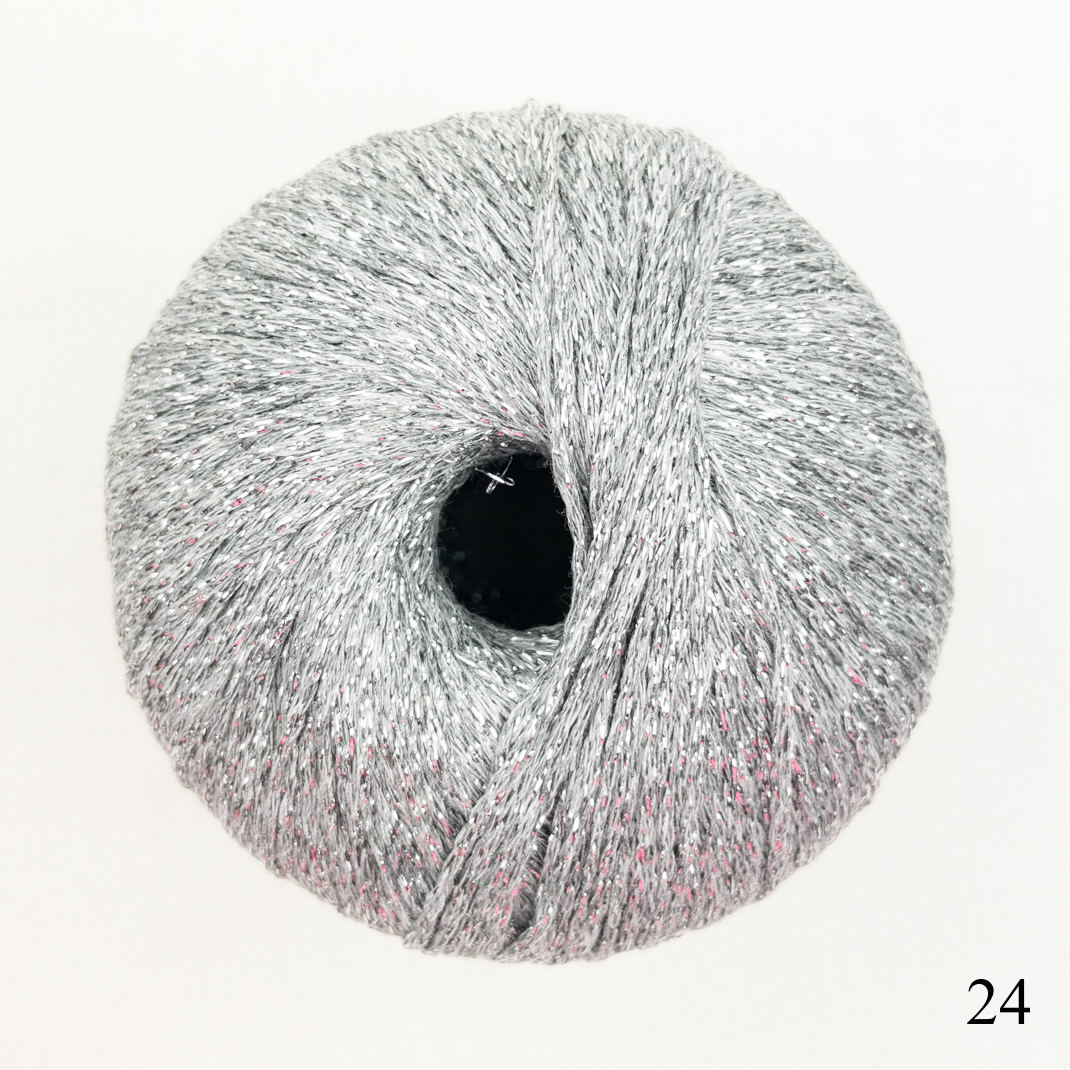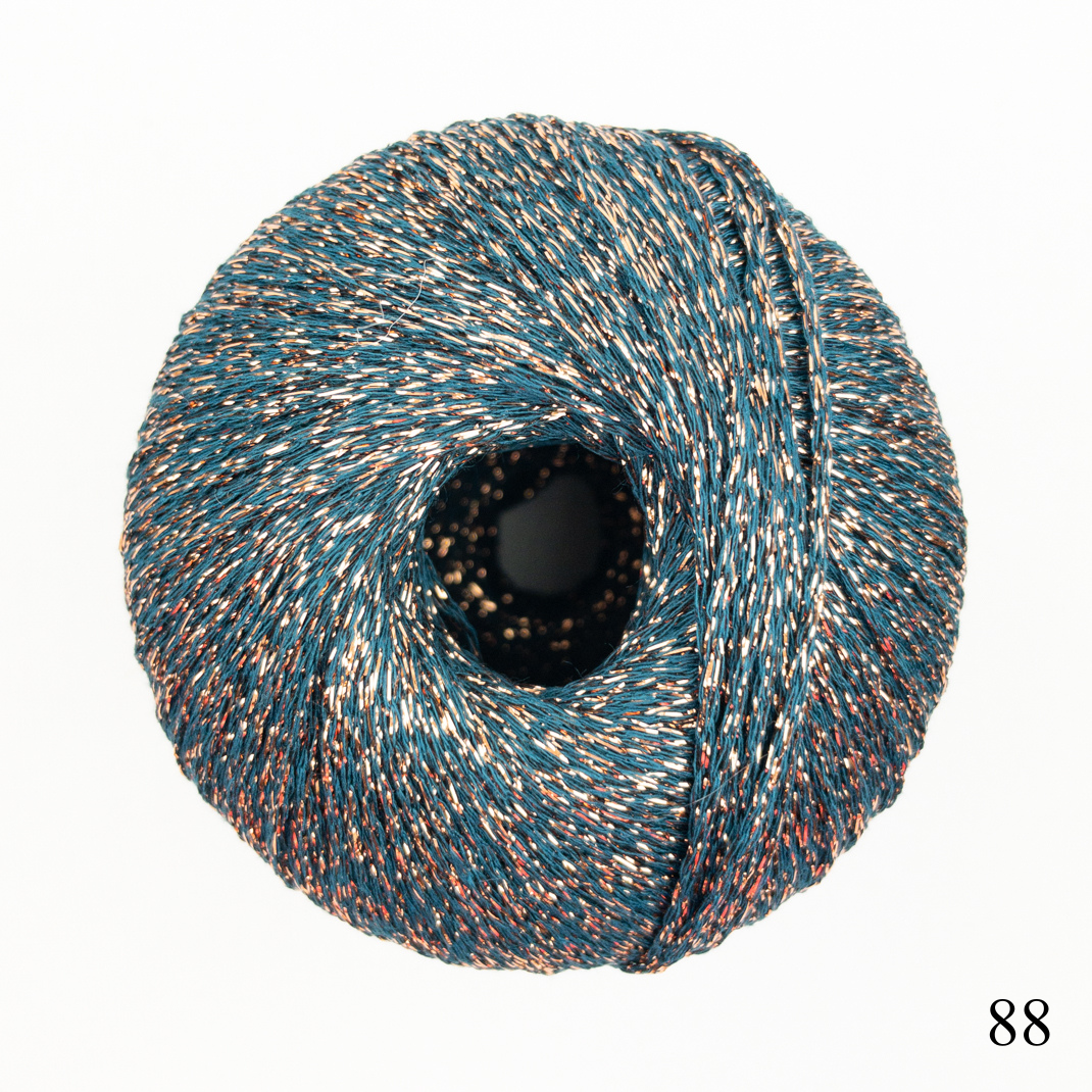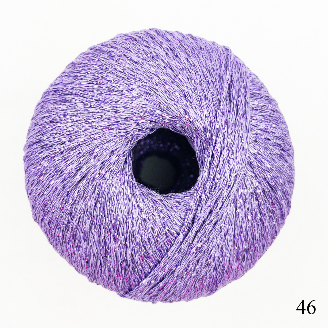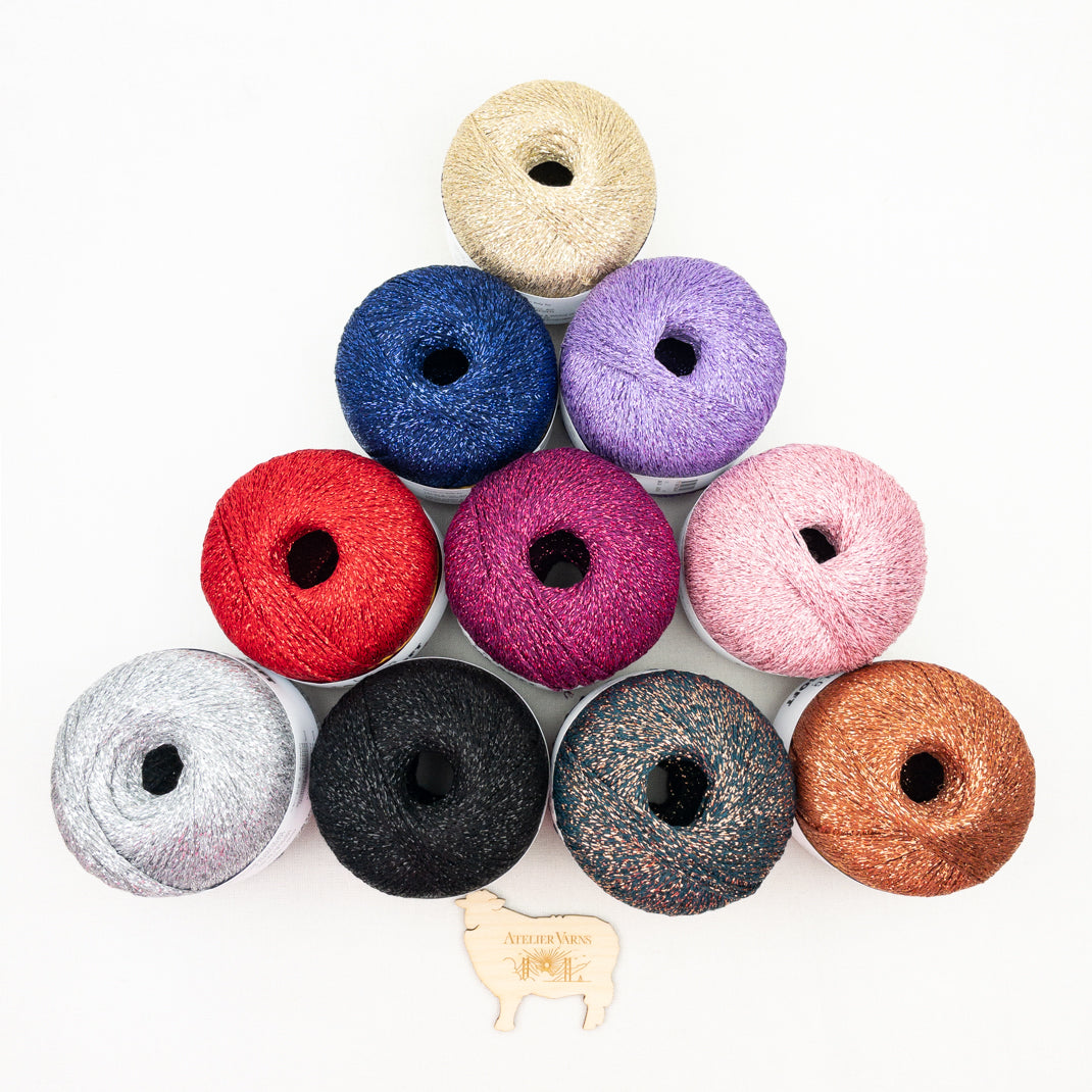 Add some sparkle to your next project with Lame Soft. This new shop favorite adds a little bling to sweaters, shawls, hats and more. Chainette plied from viscose and a metallic polyester thread to catch the light.