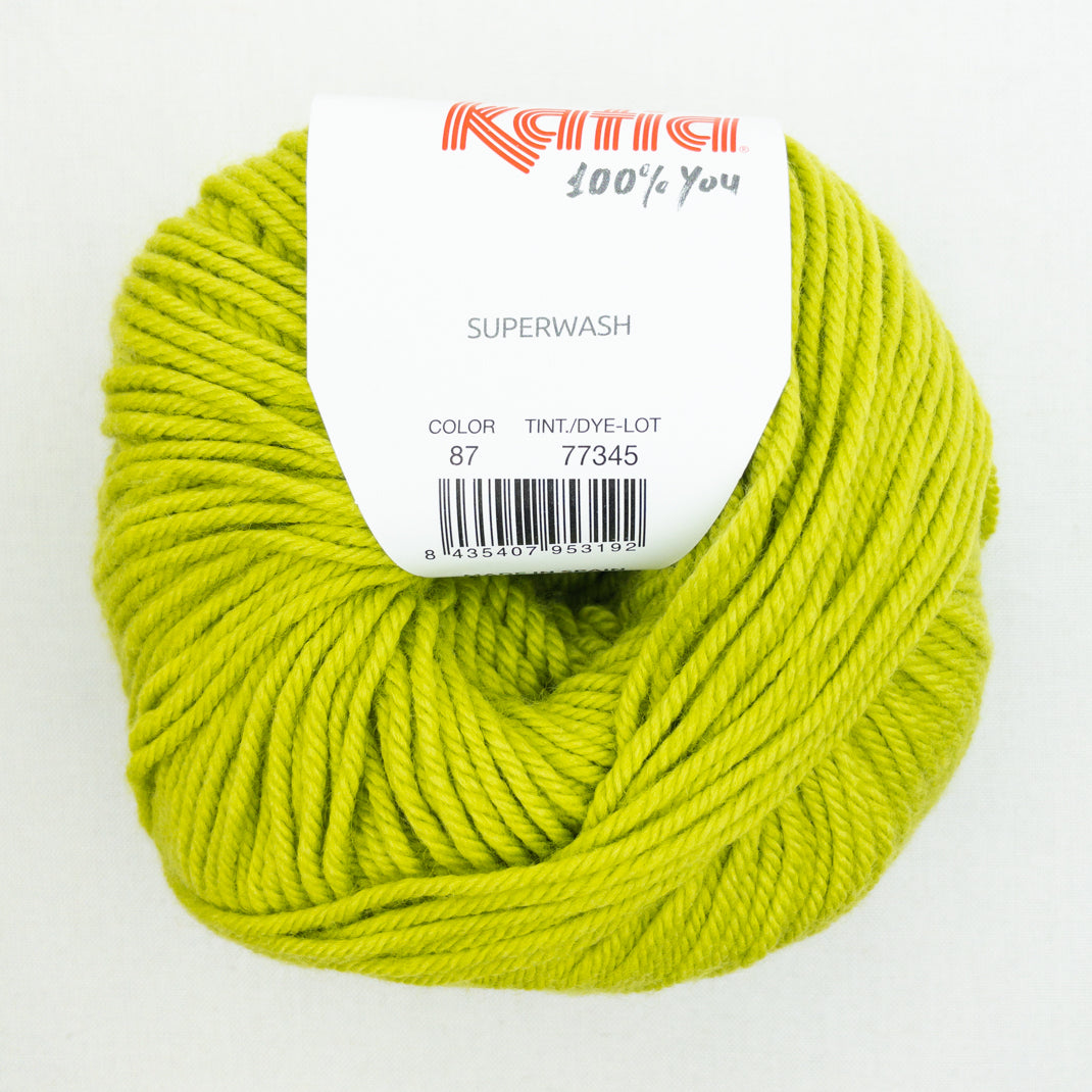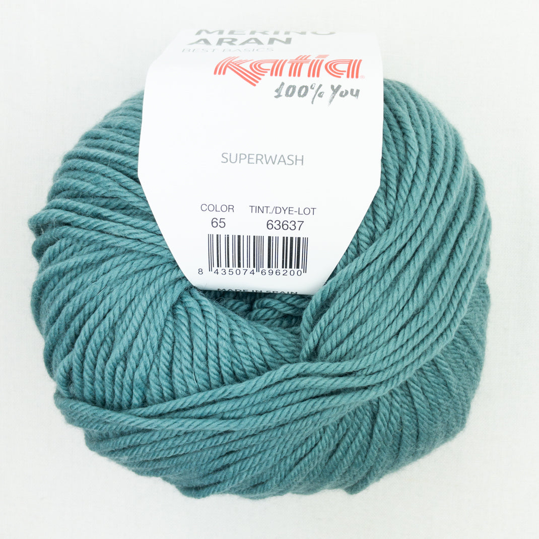 Fabulously soft & squishy, Katia Merino Aran knits up beautifully. An easy-care machine washable yarn with excellent twist and stitch definition. Great for most every project! We love it for babies!