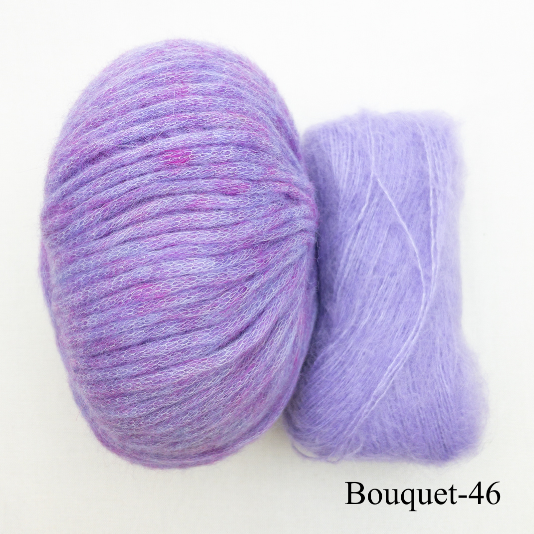 ~9 (10, 10, 12) (12, 13, 13) (14, 15) skeins Juniper Moon Farm Beatrix, 54% Extrafine Merino Wool, 30% Angora, 16% Nylon, 109 yards each