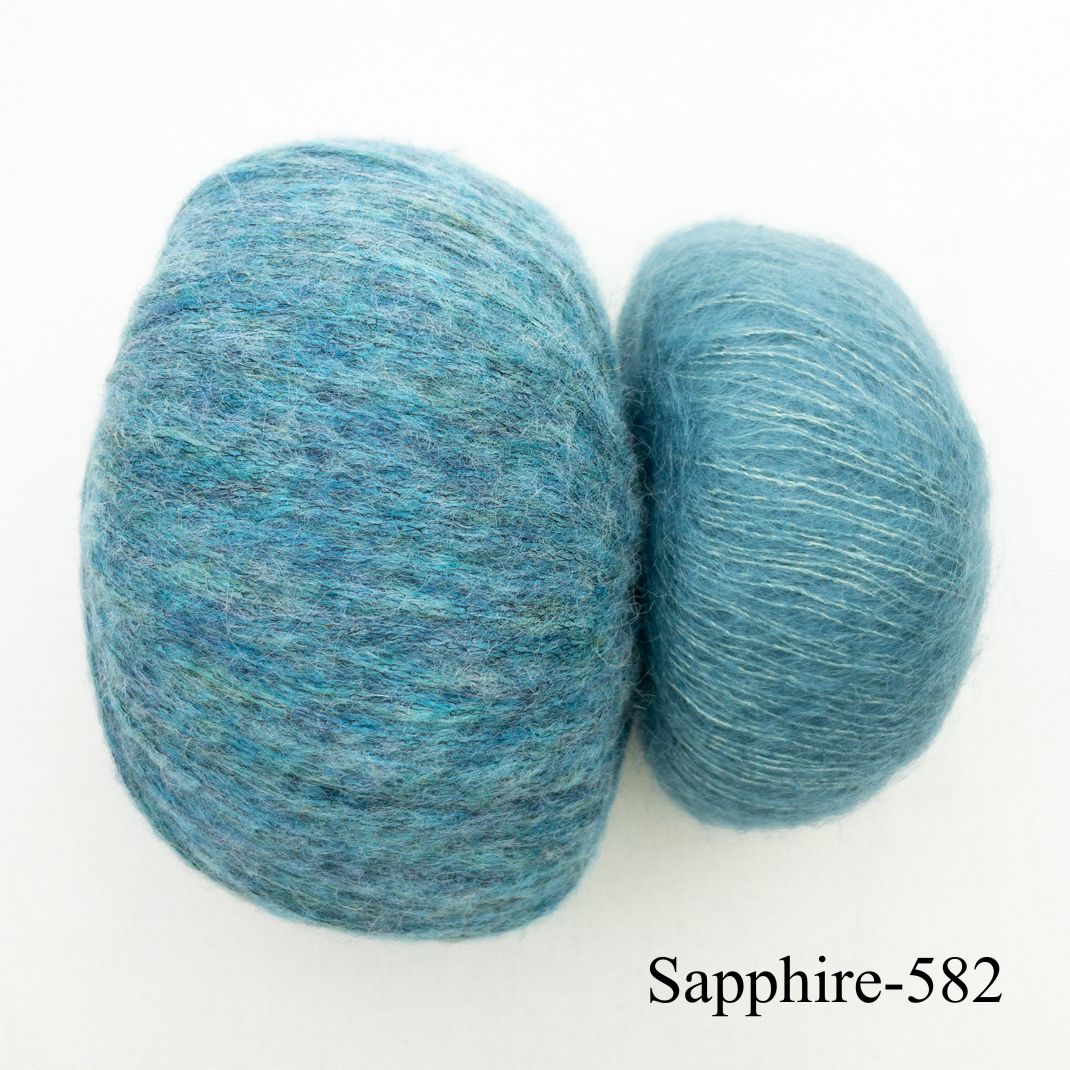 The super snuggly cardigan of your dreams! Daydreamer Cardigan is worked in a sumptuous Half Fisherman's rib, giving it extra loft and squish! The slightly balloon shaped sleeves together with the elegant raglan yoke shaping makes this a true classic in any wardrobe. We knit ours in Juniper Moon Beatrix and Rowan Kidsilk Haze, the end result is lightweight comfort with a glorious halo. You'll be wearing this cardi on repeat!