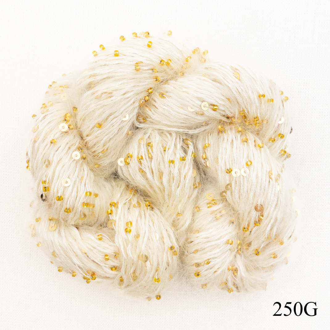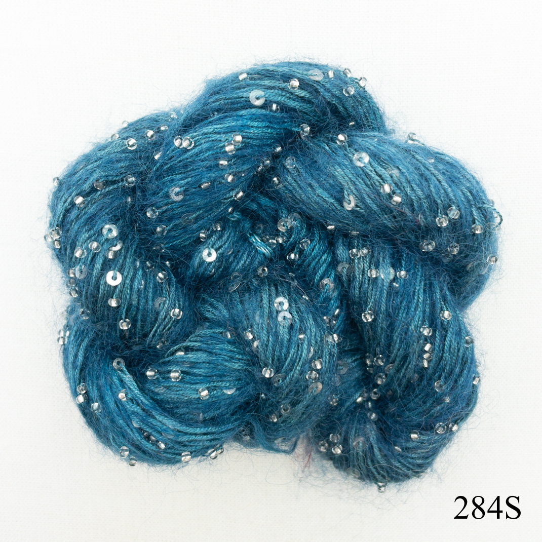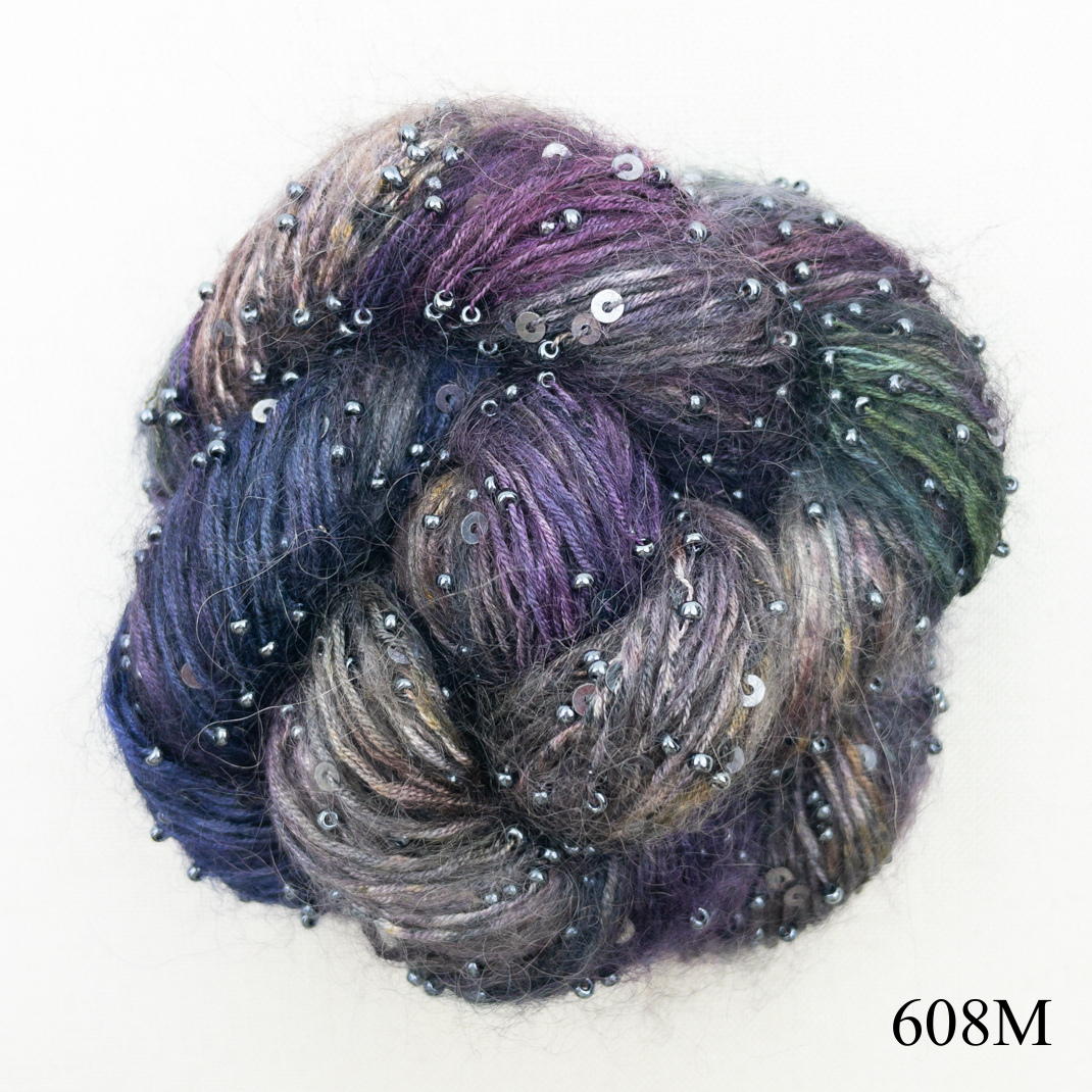 - Content: 60% Mulberry Silk with Silk-Strung Sequins and Murano Glass Beads, 40% Mohair
