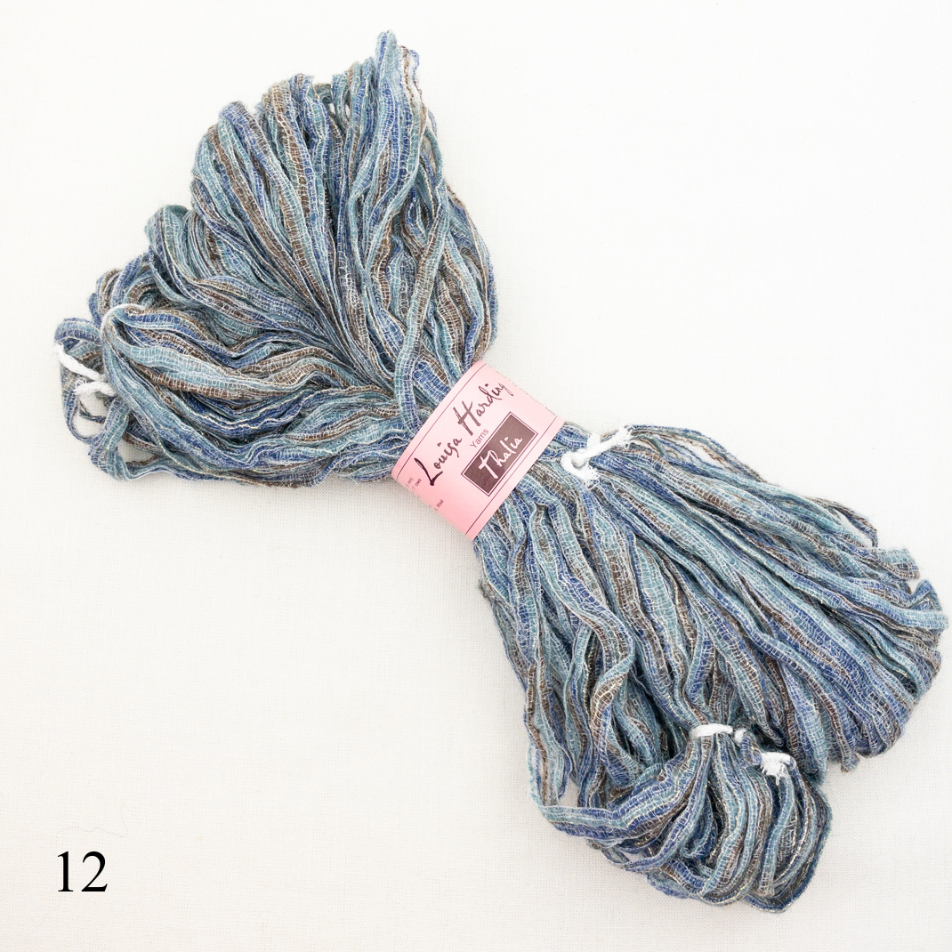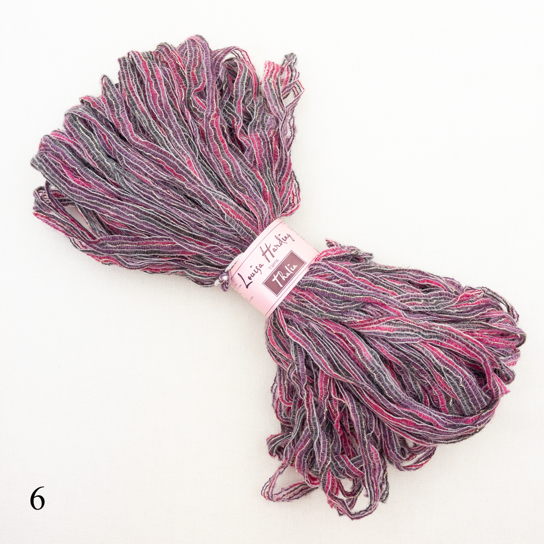 Add some texture to your next project with Louisa Harding Thalia Ribbon.  This bulky weight yarn knits up quick and gives your finished object texture and shine!