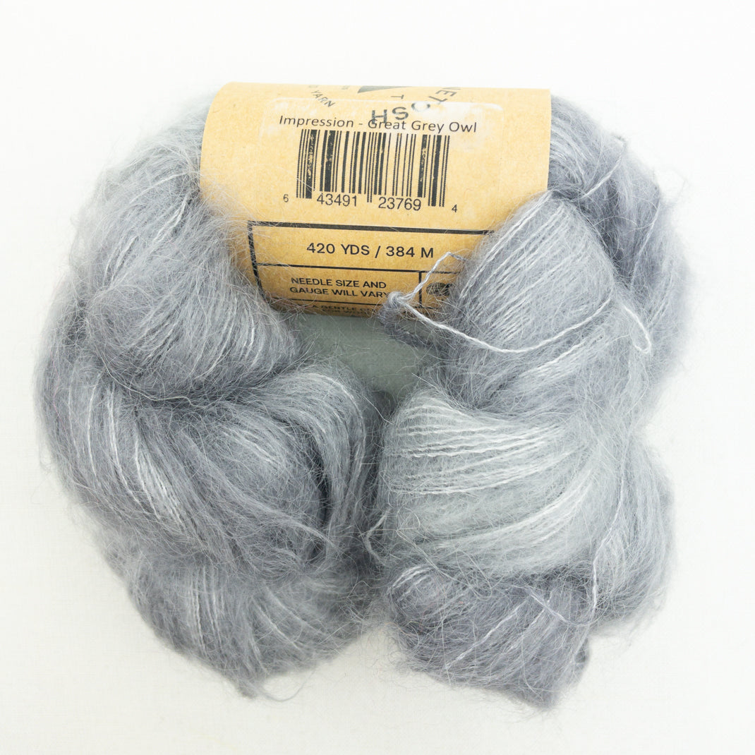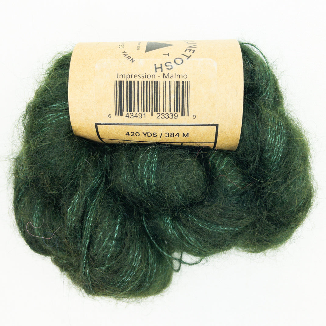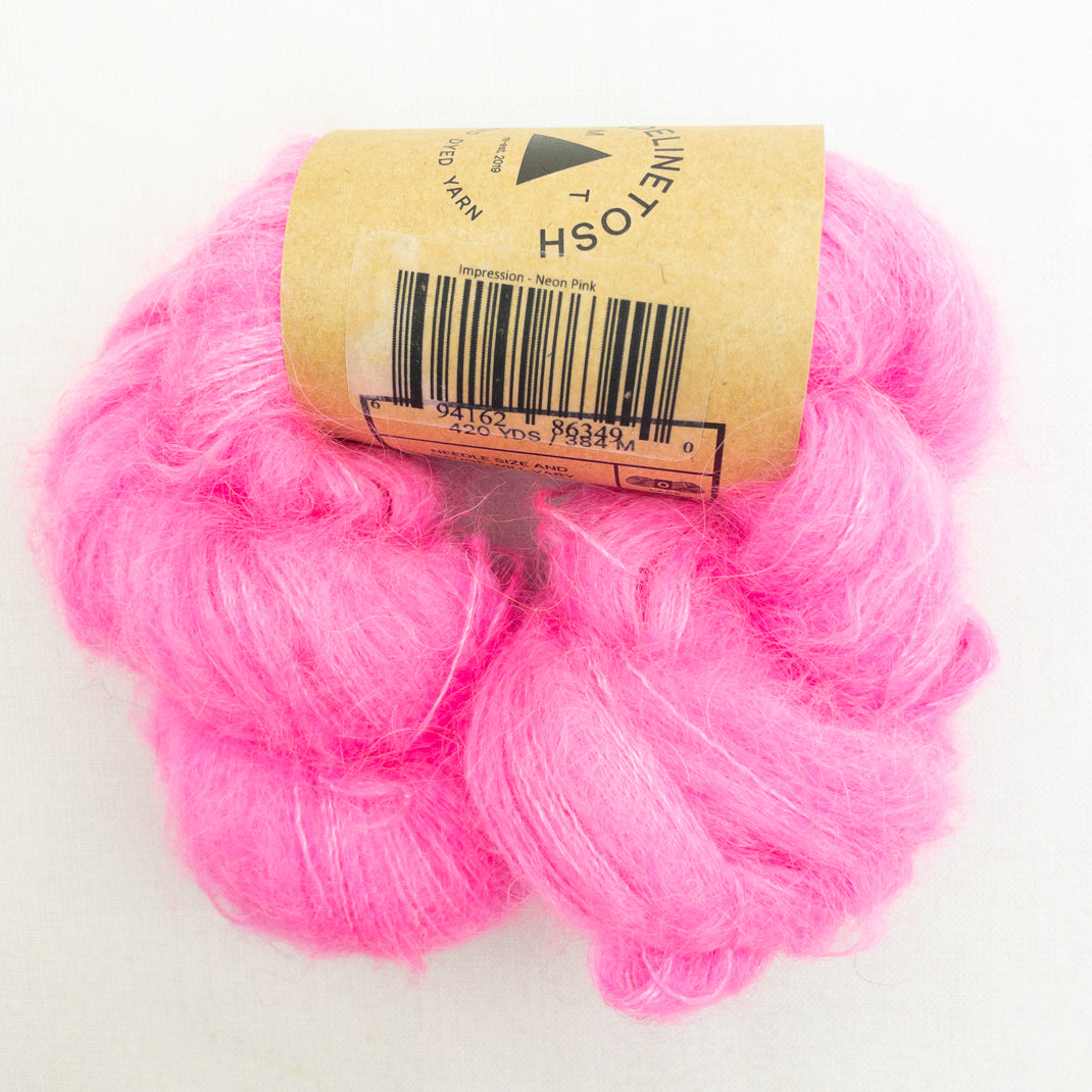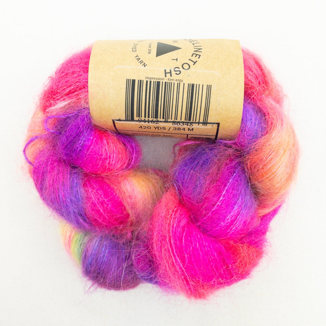 A lace weight mohair silk blend in the beautiful colors of Madelinetosh. Knit it solo for an airy lace project, hold it double and you have a DK weight yarn, or combine it with your favorite wool to add a luminous halo to your work.