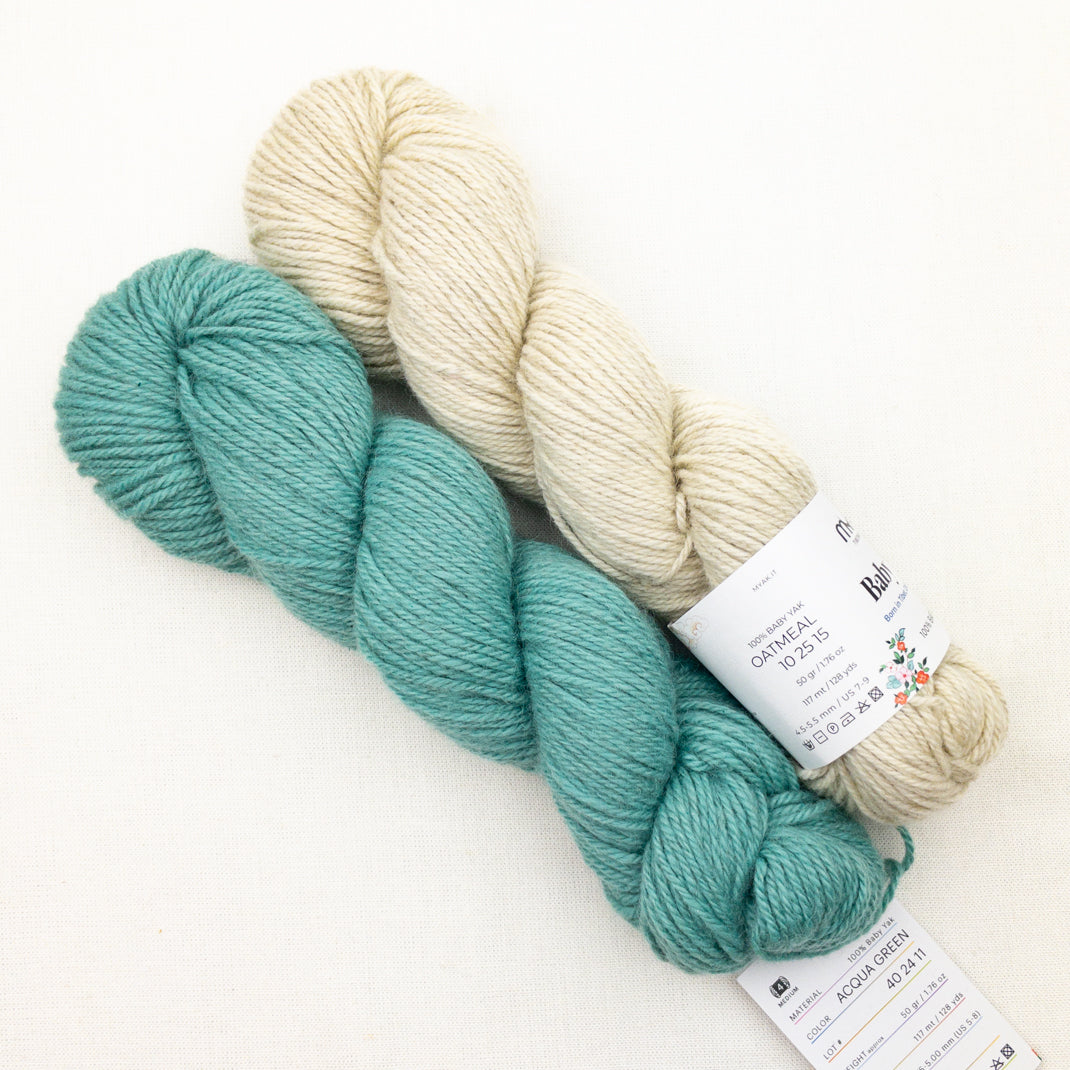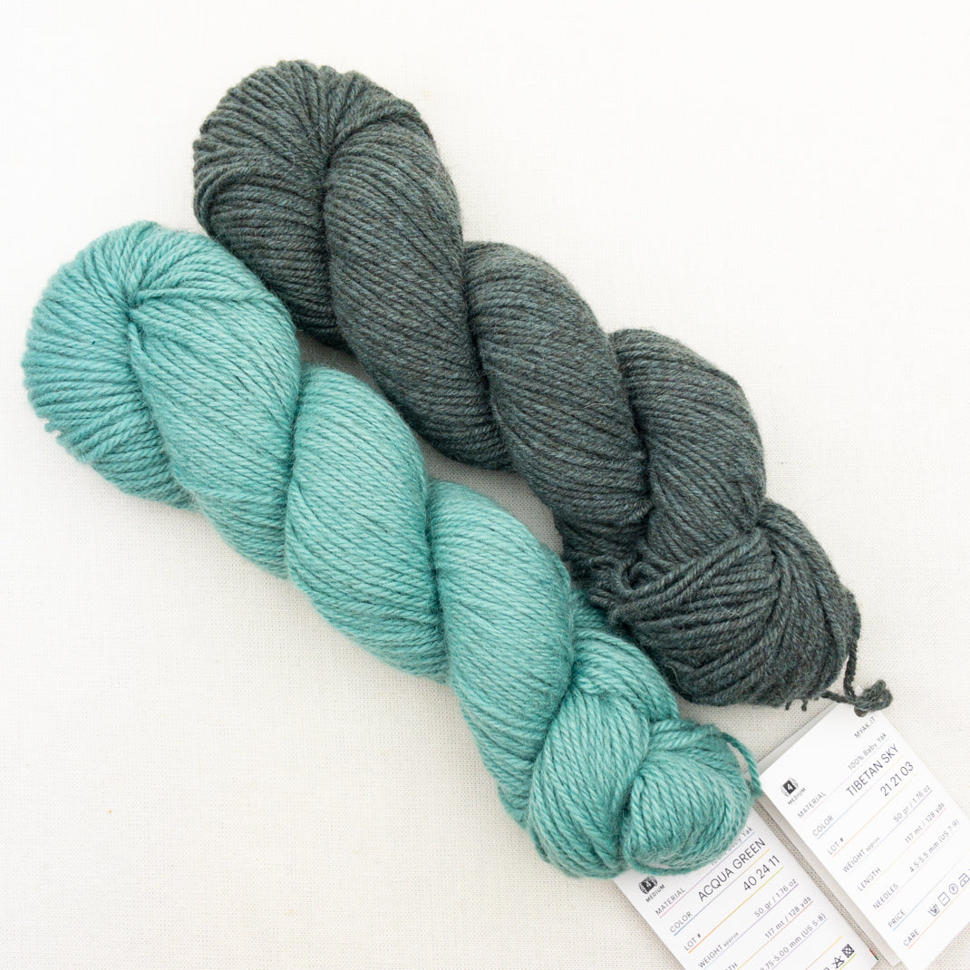 ~2 skeins mYak Baby Yak Medium, 100% yak, 125 yards each.