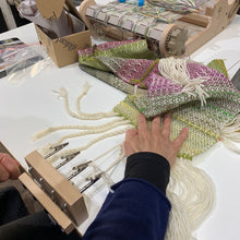 In the first class, we will teach you to warp your loom and teach you different weaving patterns incorporating yarns from your stash. In the second class, we'll show you how to take your project off the loom and how to finish it. We'll also help you put a second warp on the loom so you leave with another piece ready to weave. If we have time, we’ll talk about some more things you can do and show you some great books to get your inspiration flowing.