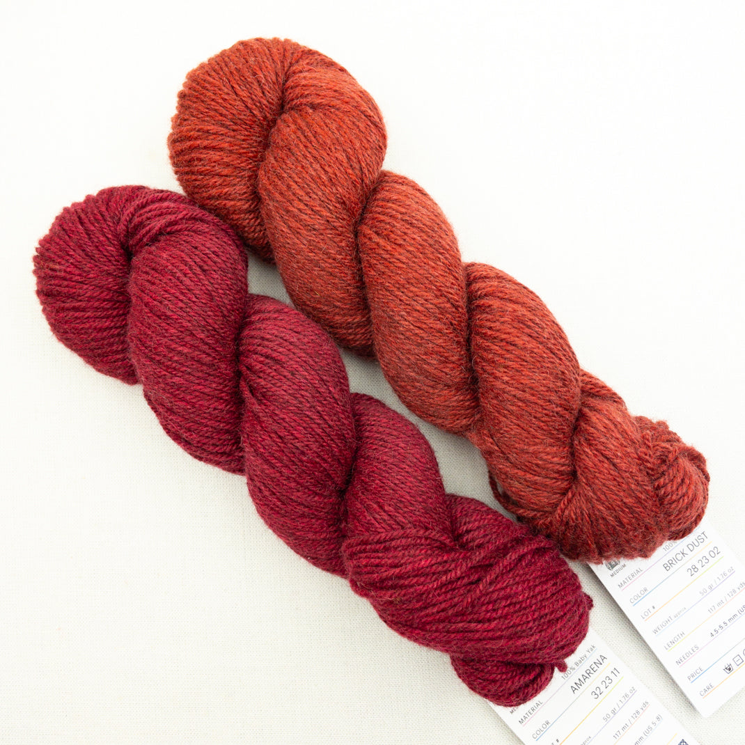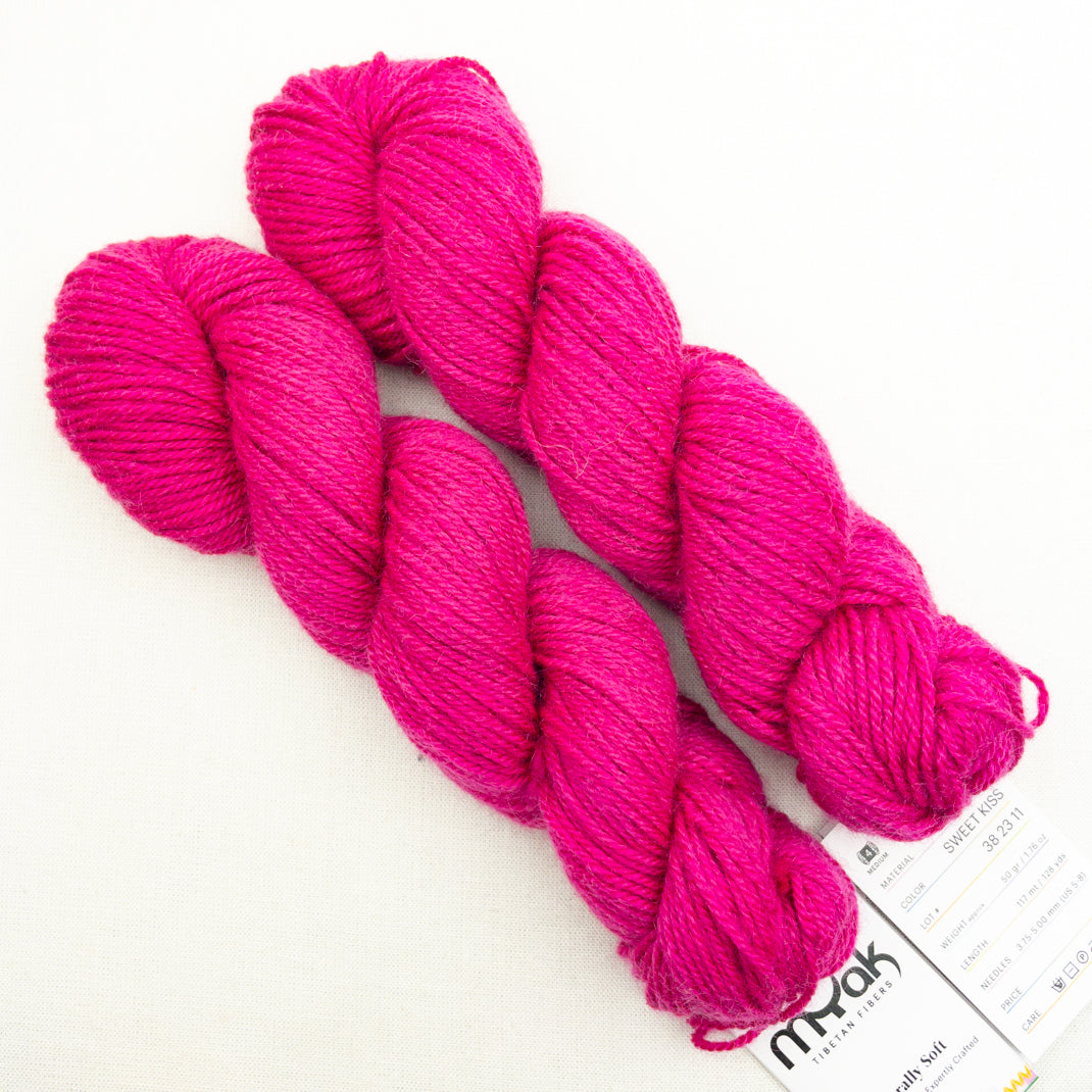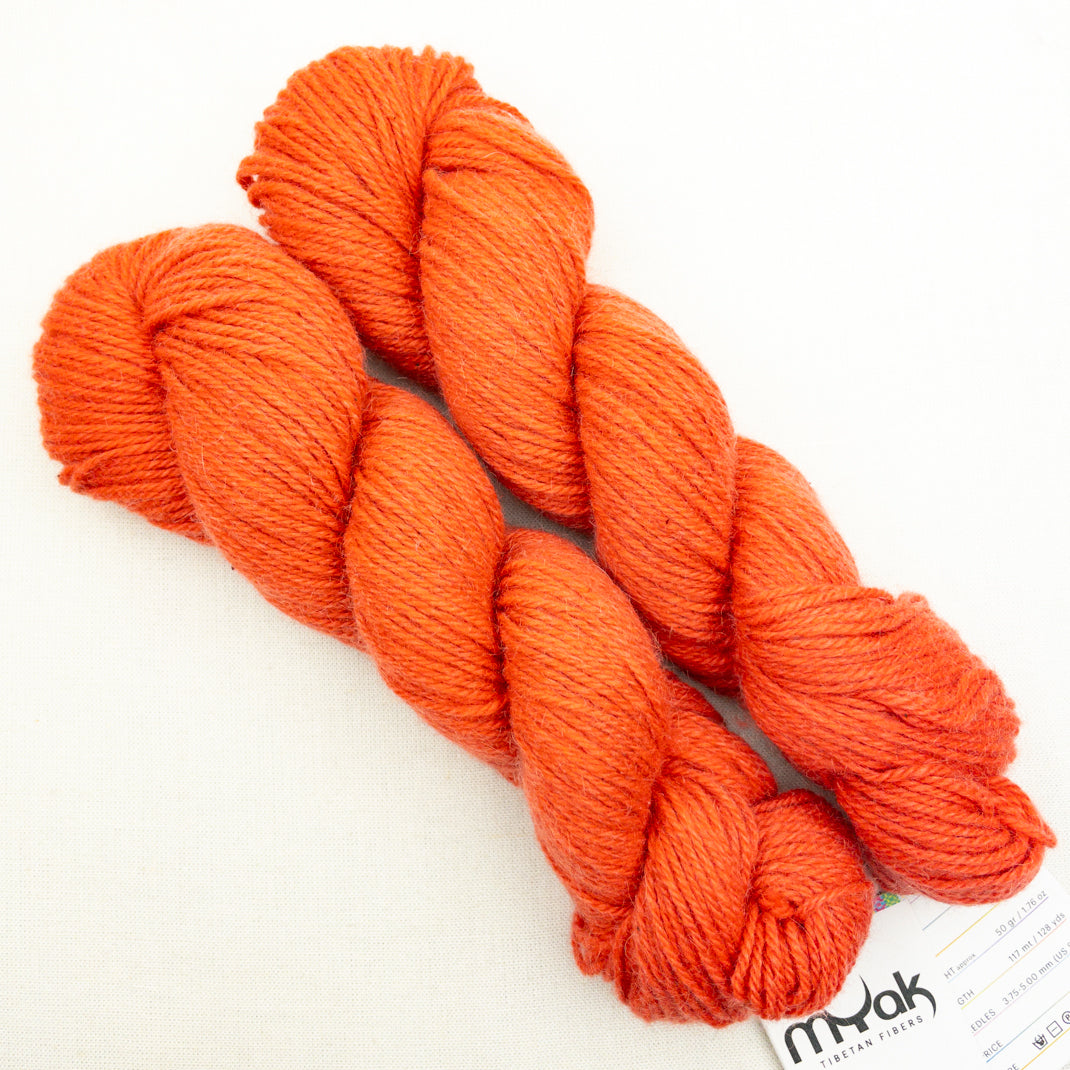 mYak Baby Yak Medium is spun from fiber that is sustainably and humanely hand-combed from domestic yak using traditional methods by Tibetan nomads. Participating in the mYak cooperative makes it possible for the Tibetans to continue their sustainable and humane practice of raising domestic yaks and adds a level of veterinary training that was not available previously in these remote highlands.