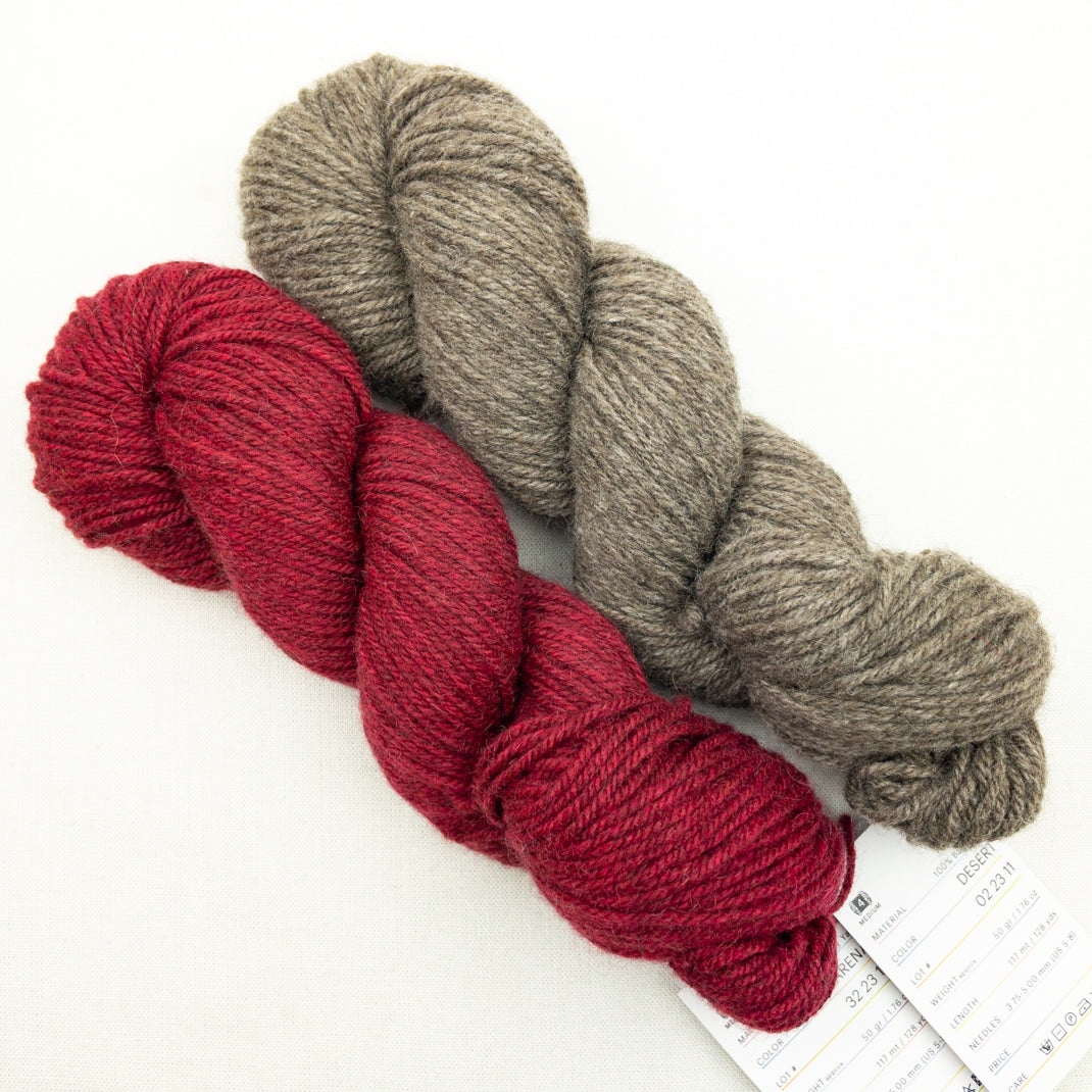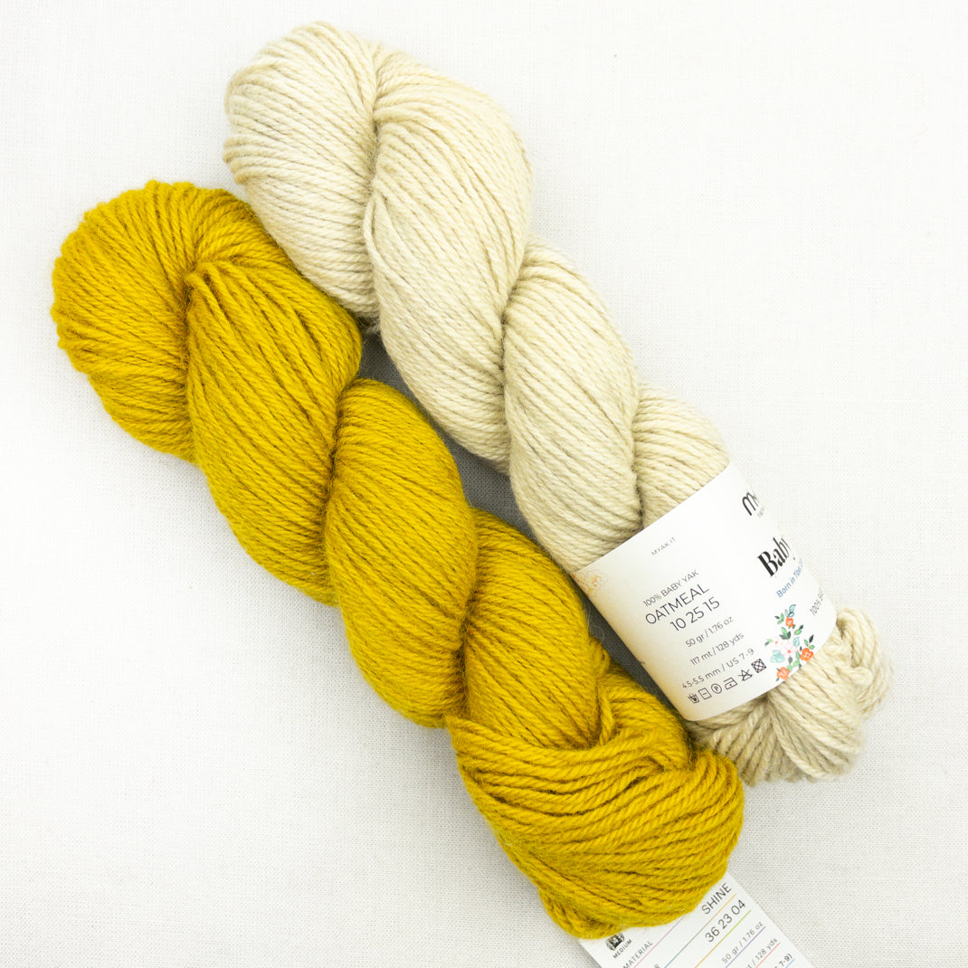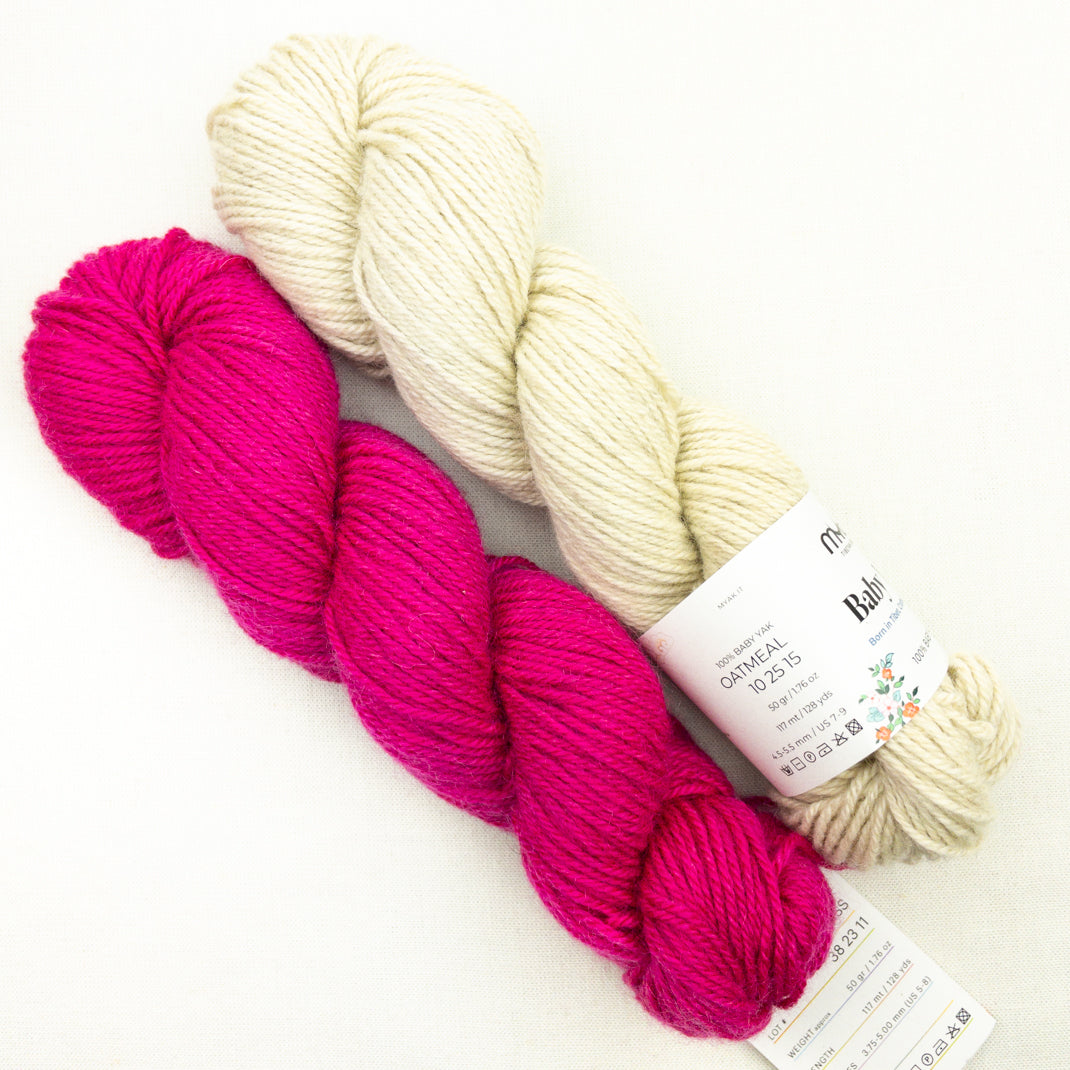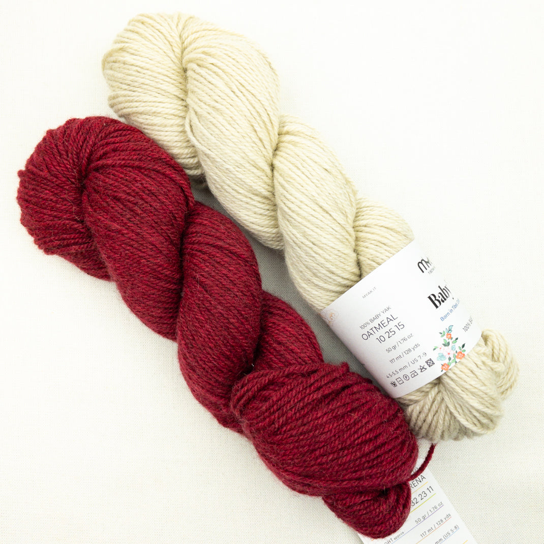 ~2 skeins mYak Baby Yak Medium, 100% yak, 125 yards each.