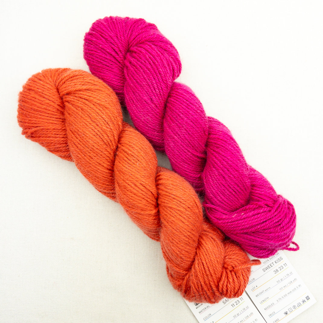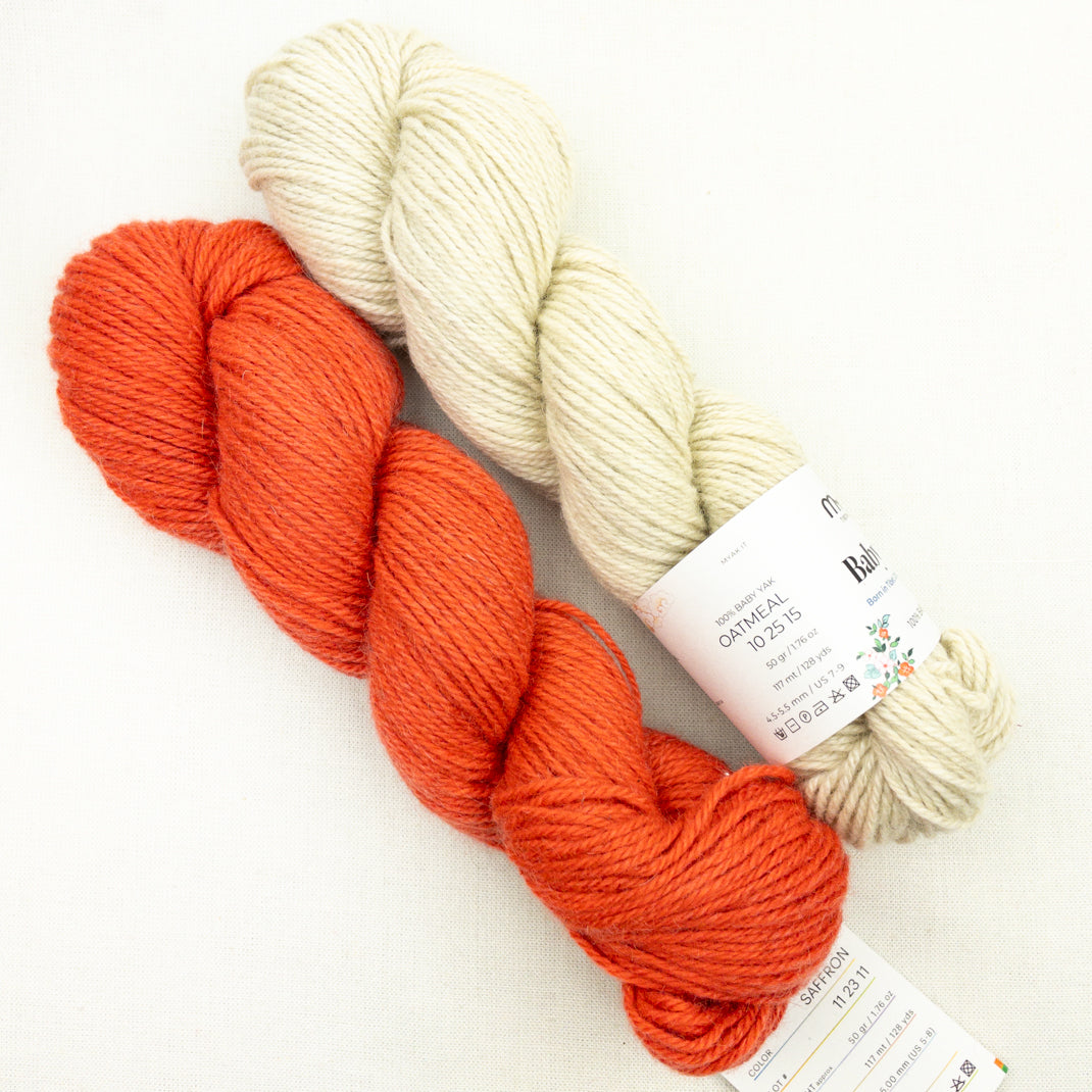 Simple and stylish! Combine two colors of luscious 100% yak yarn to create this slouchy colorblock hat. Or choose two skeins of one color and make a solid. Either way, you're going to want to add a pompom!