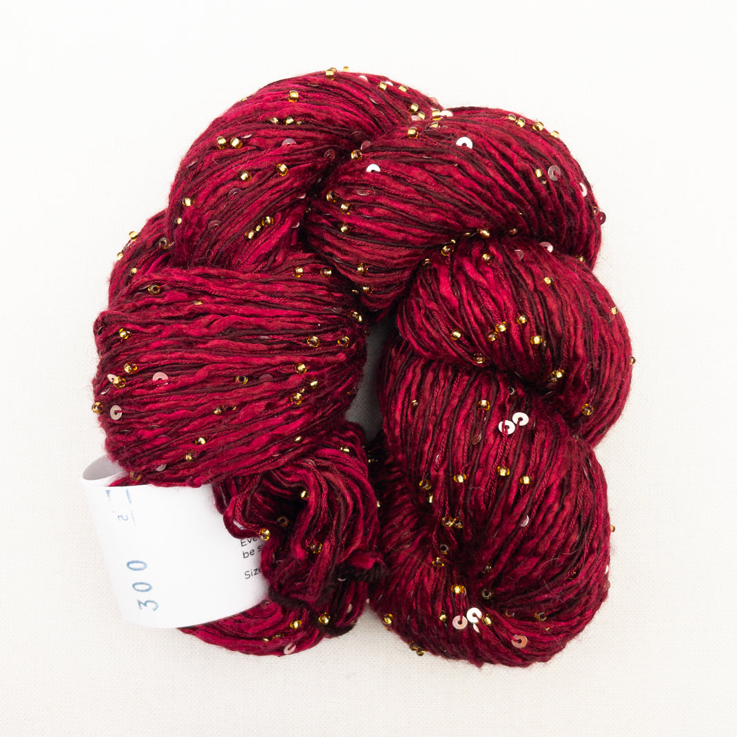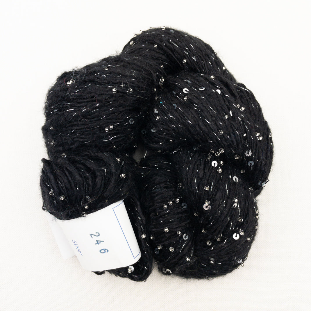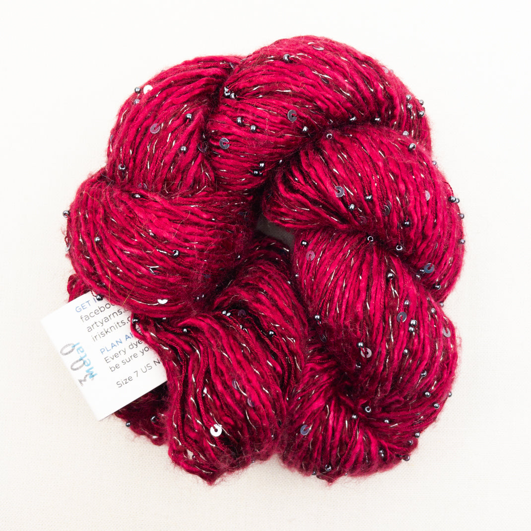 Atelier Exclusive yarn!! Delectable Beaded Ensemble & Sequins is custom made just for Atelier. This luscious blend of Japanese Mulberry silk and cashmere is embellished with both Murano glass beads & sequins. Perfect for adding a little bling to your next project!
