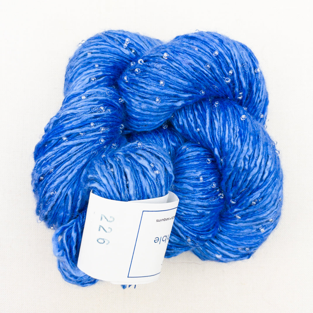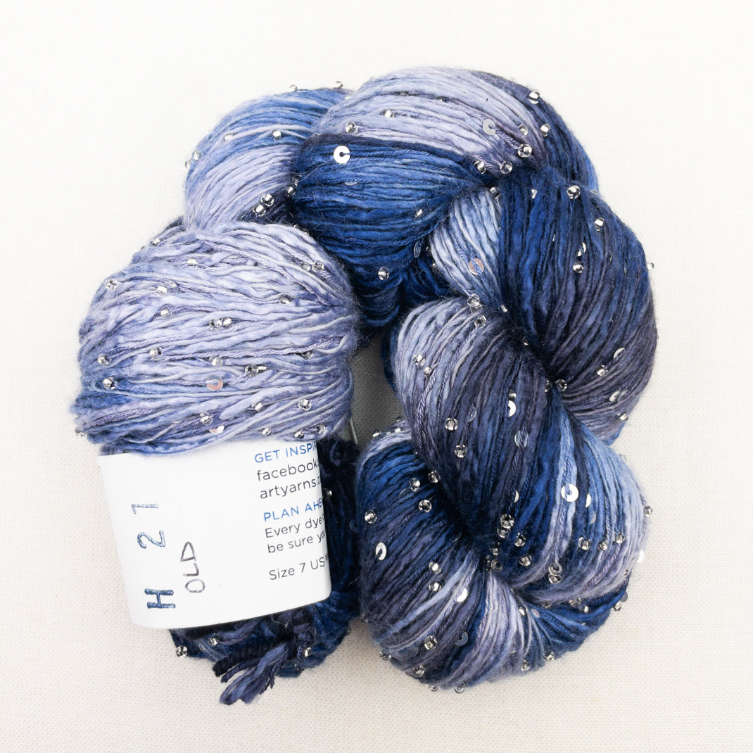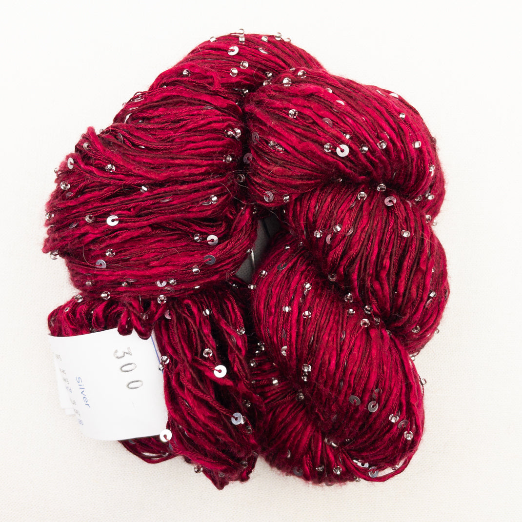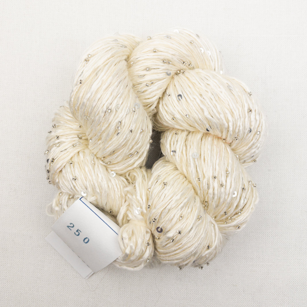 Atelier Exclusive yarn!! Delectable Beaded Ensemble & Sequins is custom made just for Atelier. This luscious blend of Japanese Mulberry silk and cashmere is embellished with both Murano glass beads & sequins. Perfect for adding a little bling to your next project!