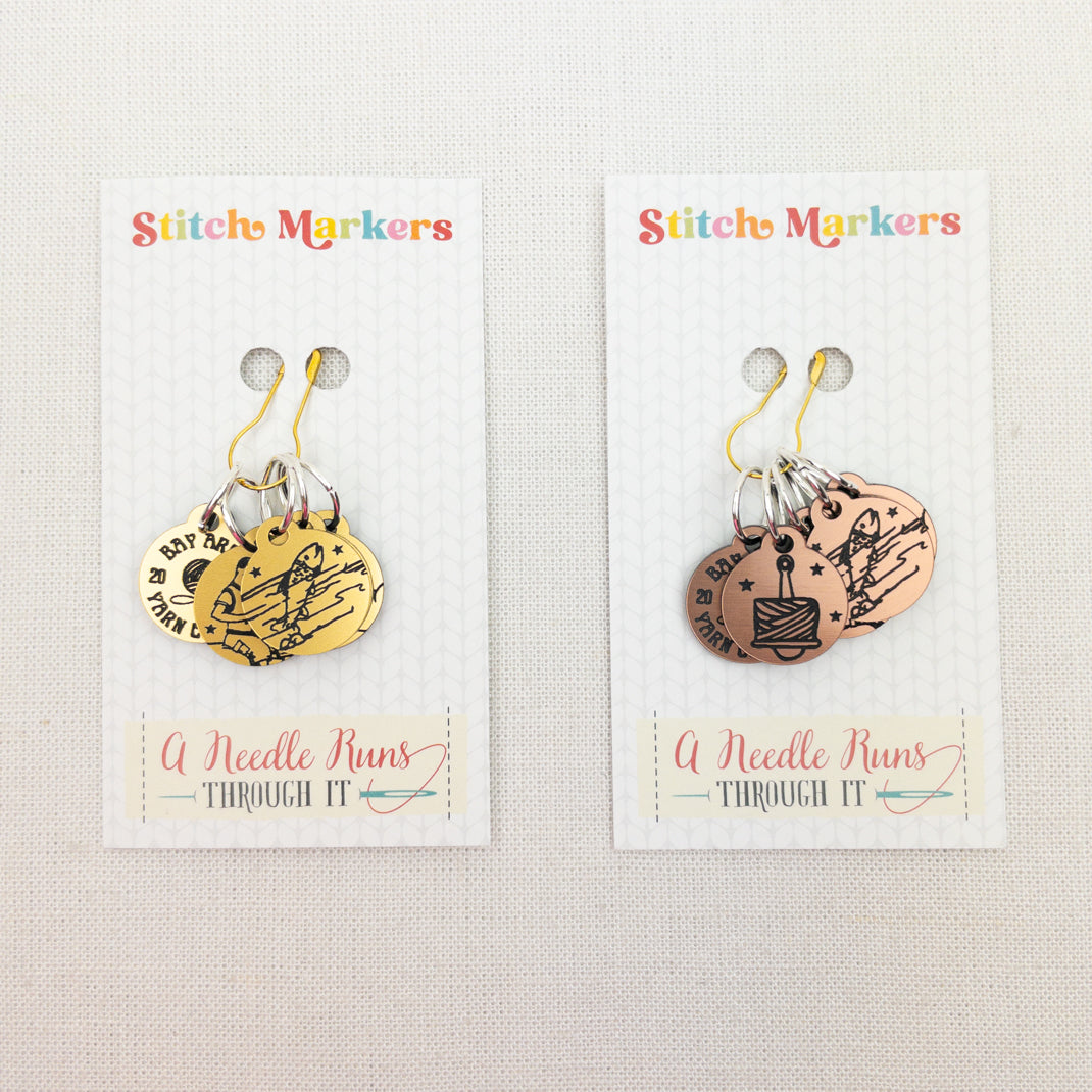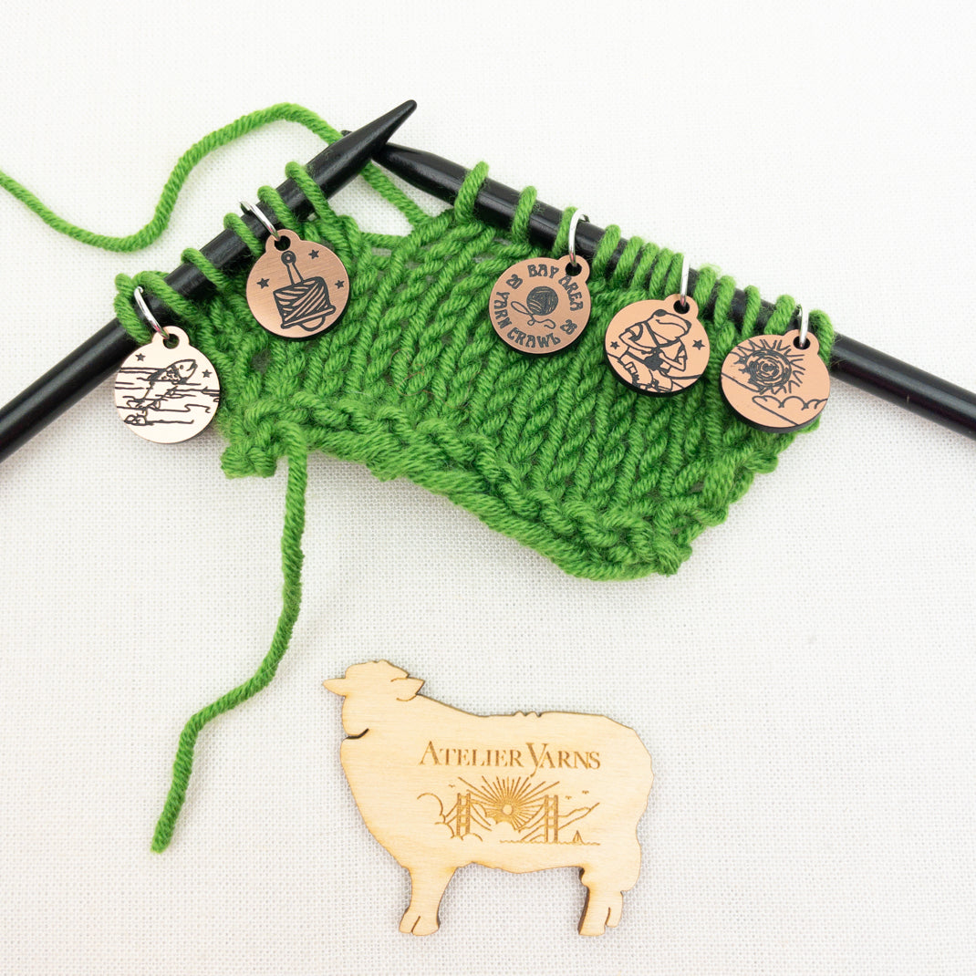Commemorate the 3rd annual Bay Area Yarn Crawl with a set of metallic stitch markers. Use these on your next project and remember all the fun you had at the crawl!
