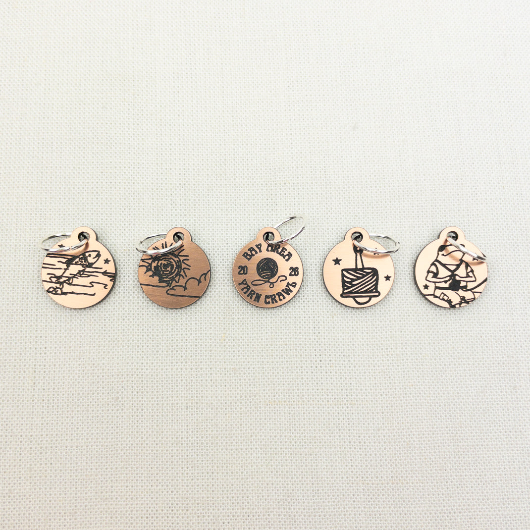 Bay Area Yarn Crawl 2026 | Metallic Stitch Markers (Set of 5)