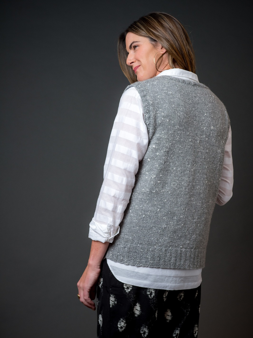 A simple and refined layering piece, the Cadillac Mountain Vest is a fun addition to any outfit! Knit in The Fibre Company Acadia, a tweedy yarn with beautiful drape. Spun from carefully selected layers of merino, silk, and natural brown baby alpaca, it's then hand dyed in rich, heathered tones. It adds the perfect amount of interest to this simple knit!