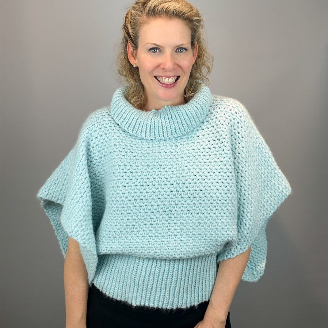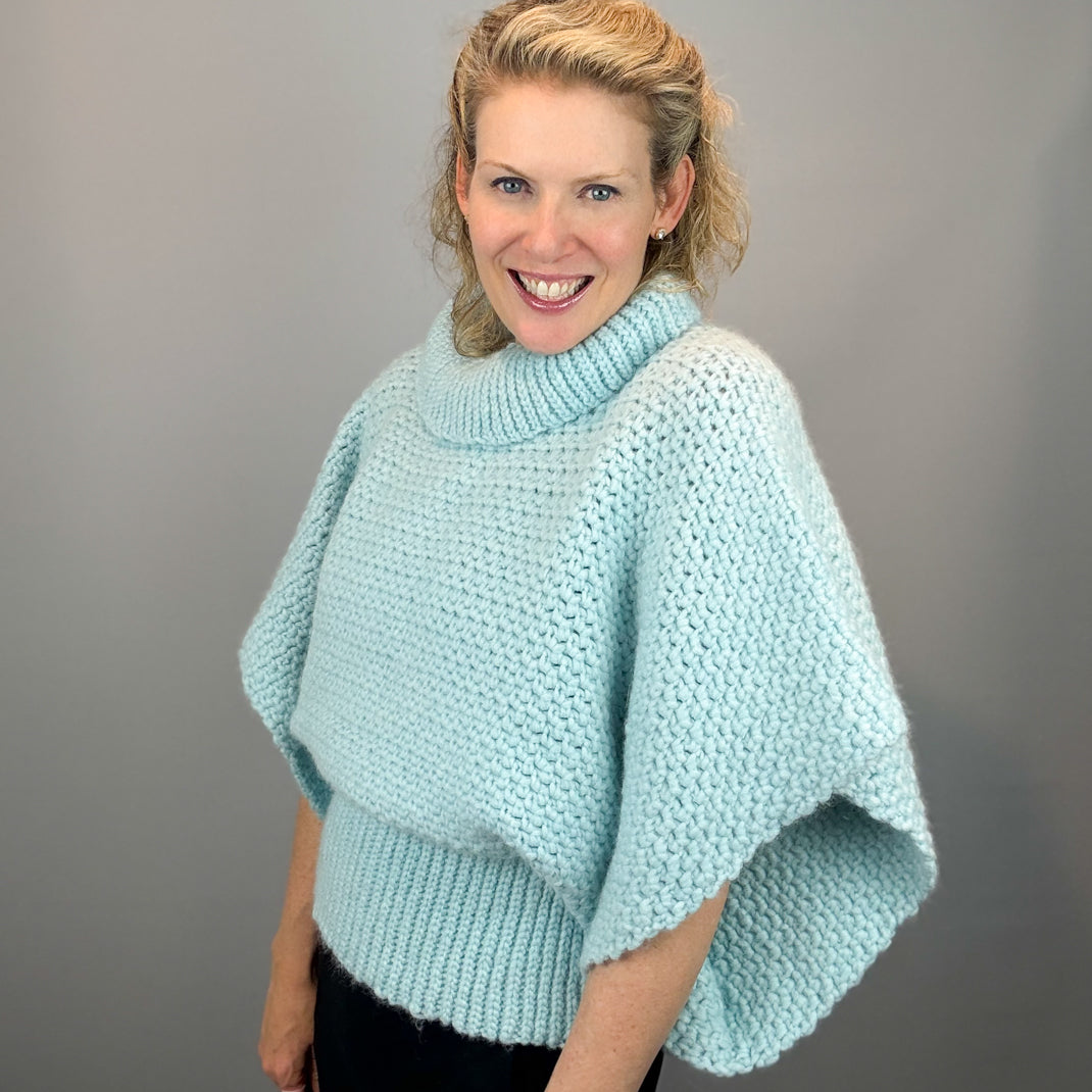 Big, soft, cozy and fast to crochet! This super bulky, oversized top has the look of a poncho while maintaining the use of your arms. It's a total statement piece that is super fun to wear! And the best part: it's really just a square! You can make it!