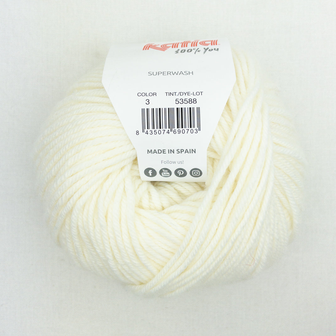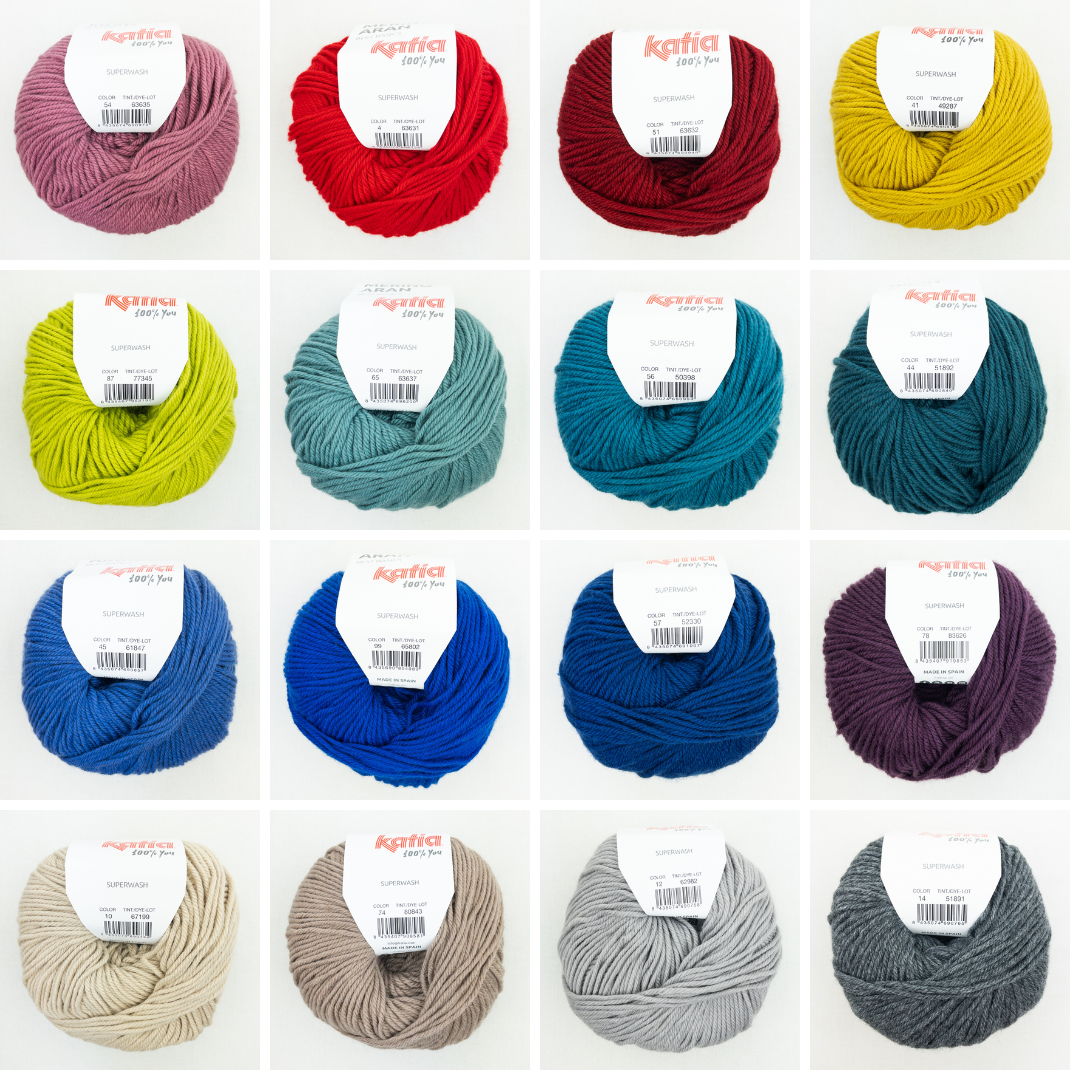 Fabulously soft & squishy, Katia Merino Aran knits up beautifully. An easy-care machine washable yarn with excellent twist and stitch definition. Great for most every project! We love it for babies!