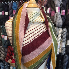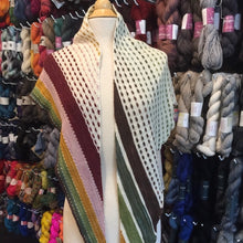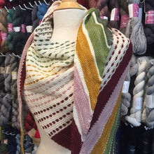 Patterns with stripes are almost always a great opportunity to use mini skeins, and Melanie Berg's On The Spice Market Shawl is no exception. The rich palette of Manos del Uruguay Fino is a perfect complement to this pattern, especially in combination with the ethereal softness of Artyarns Merino Cloud.