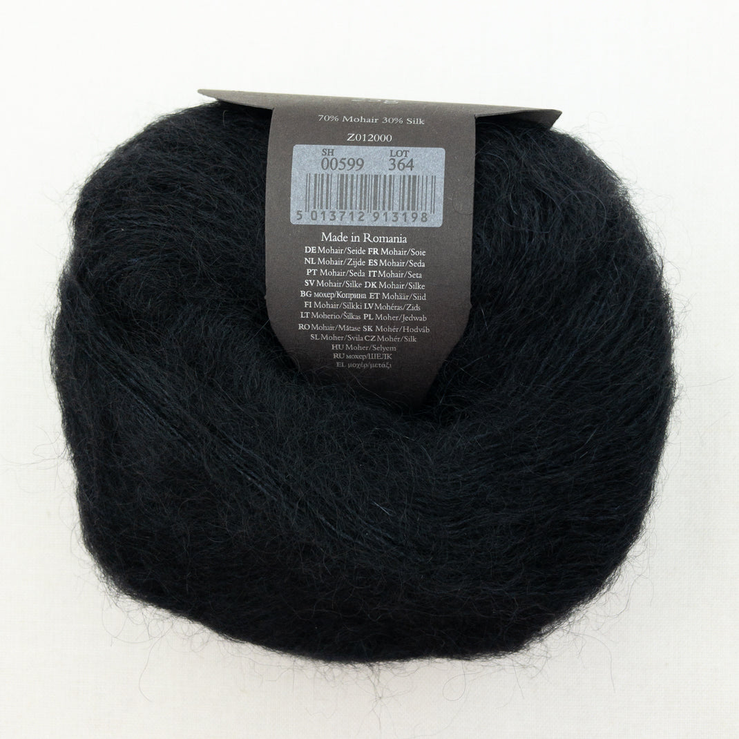 Rowan Kidsilk Haze combines the soft halo of super kid mohair with the vibrant shine of silk in one incredible yarn that is loved by knitters the world over. Kidsilk Haze can be used with a variety of needle sizes to create different effects and styles, and is a firm favorite with lace fans. Used alongside other yarns it takes on an almost magical quality, and is available in a kaleidoscopic array of stunning colors.