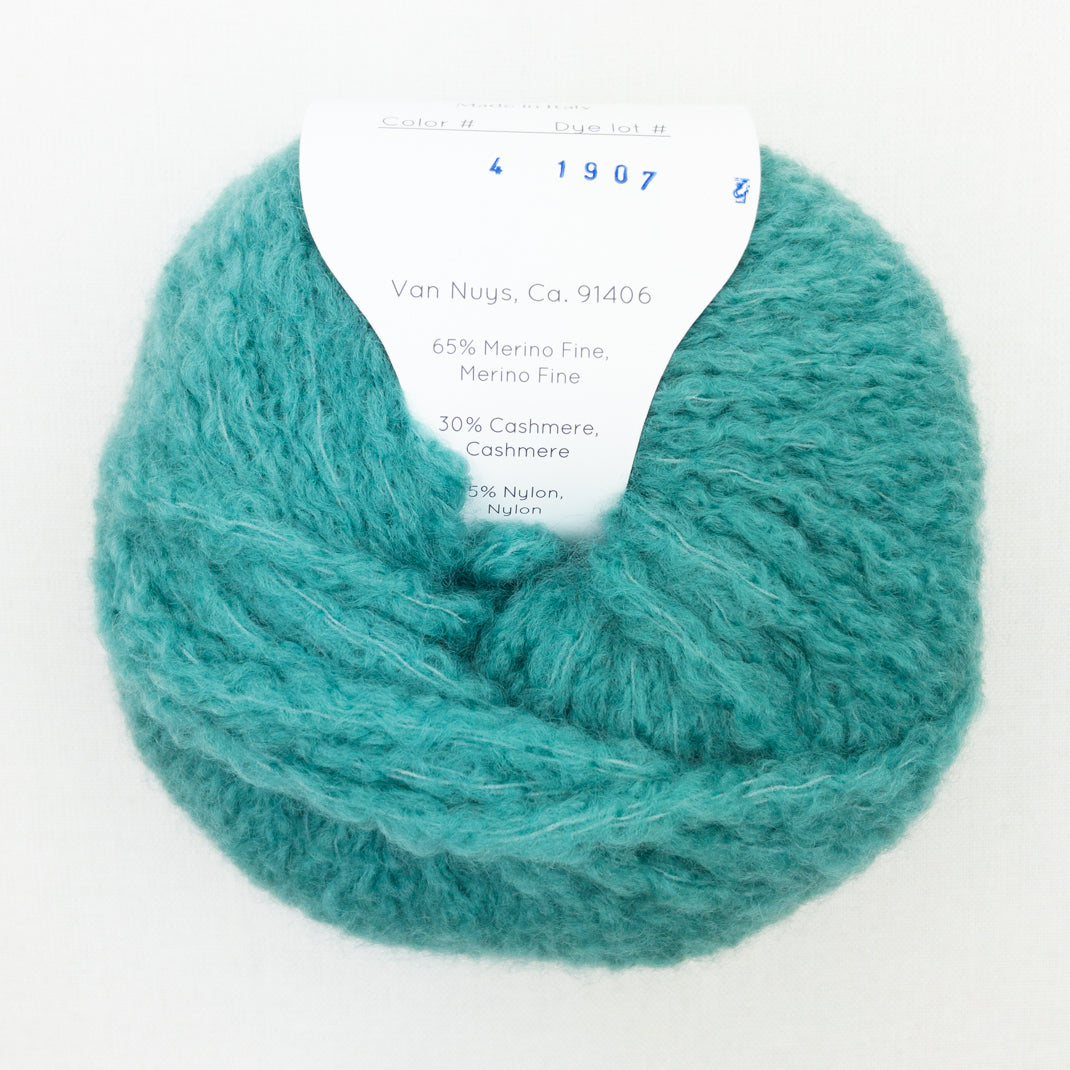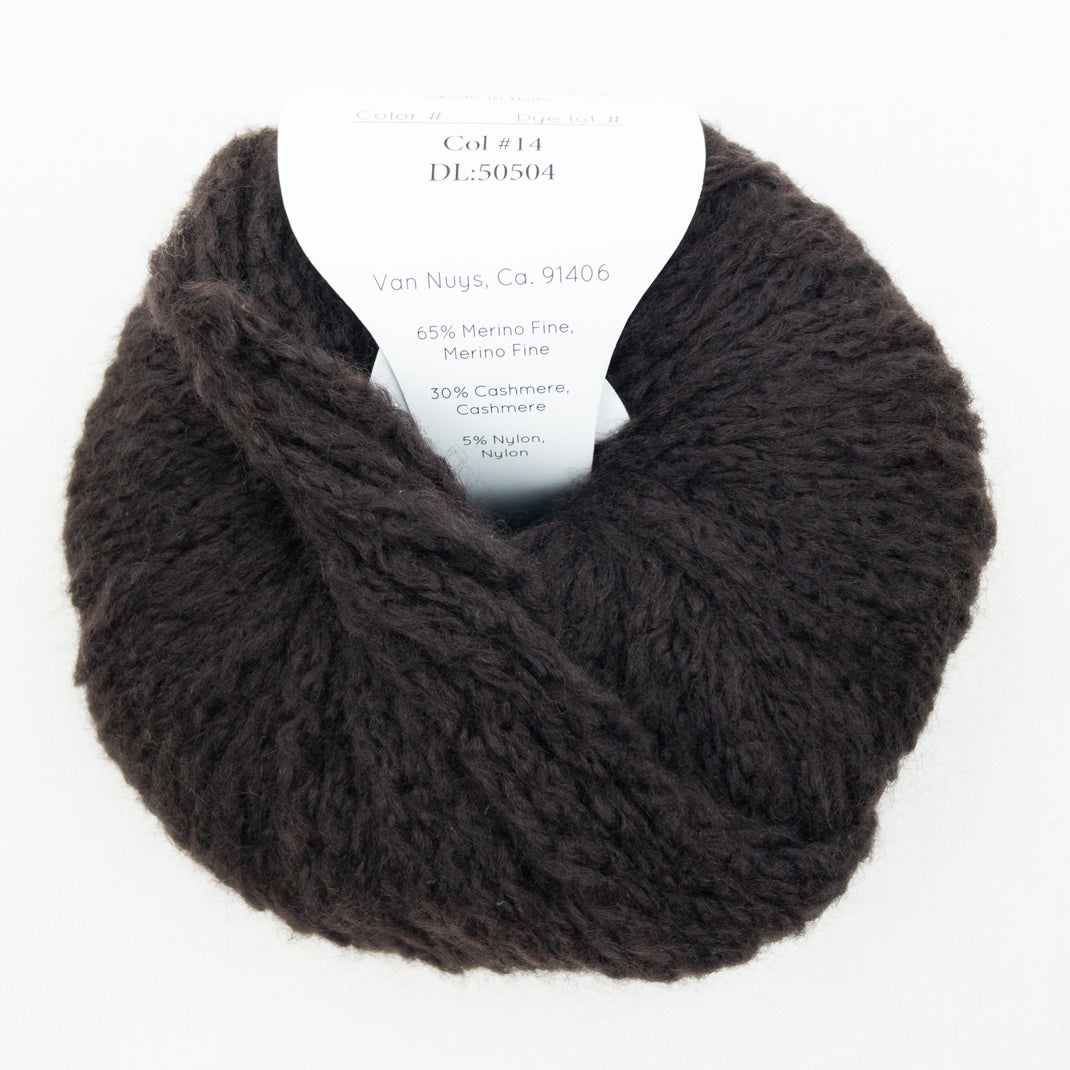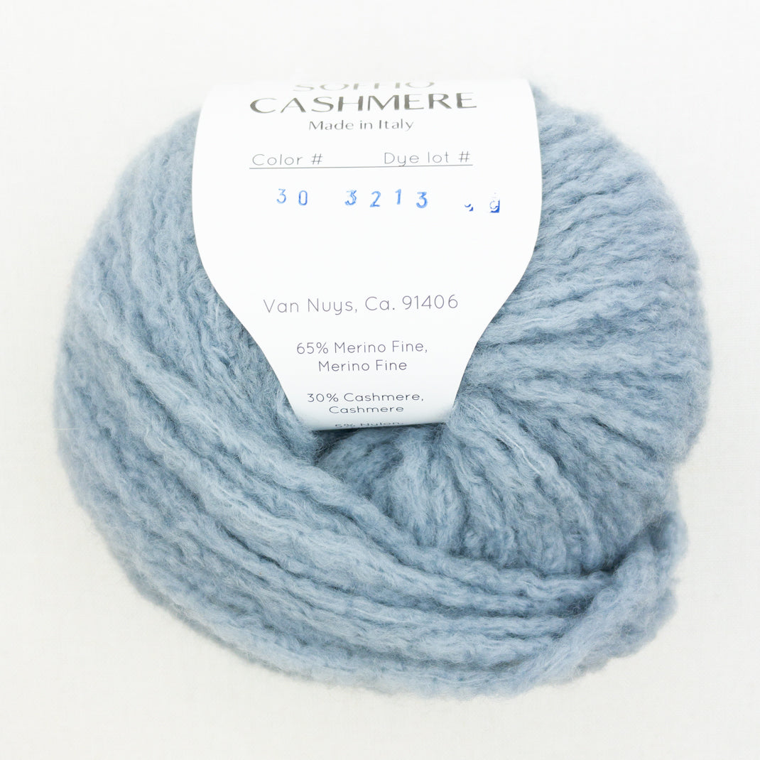 ~4 skeins Soffio Cashmere, 65% Wool, 30% Cashmere, 5% Nylon, 75 yards each.